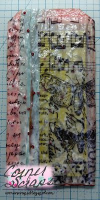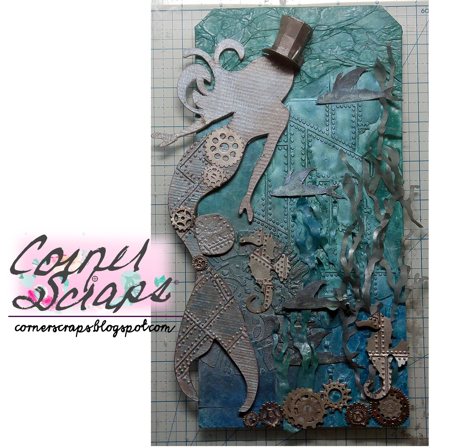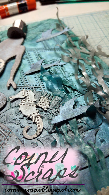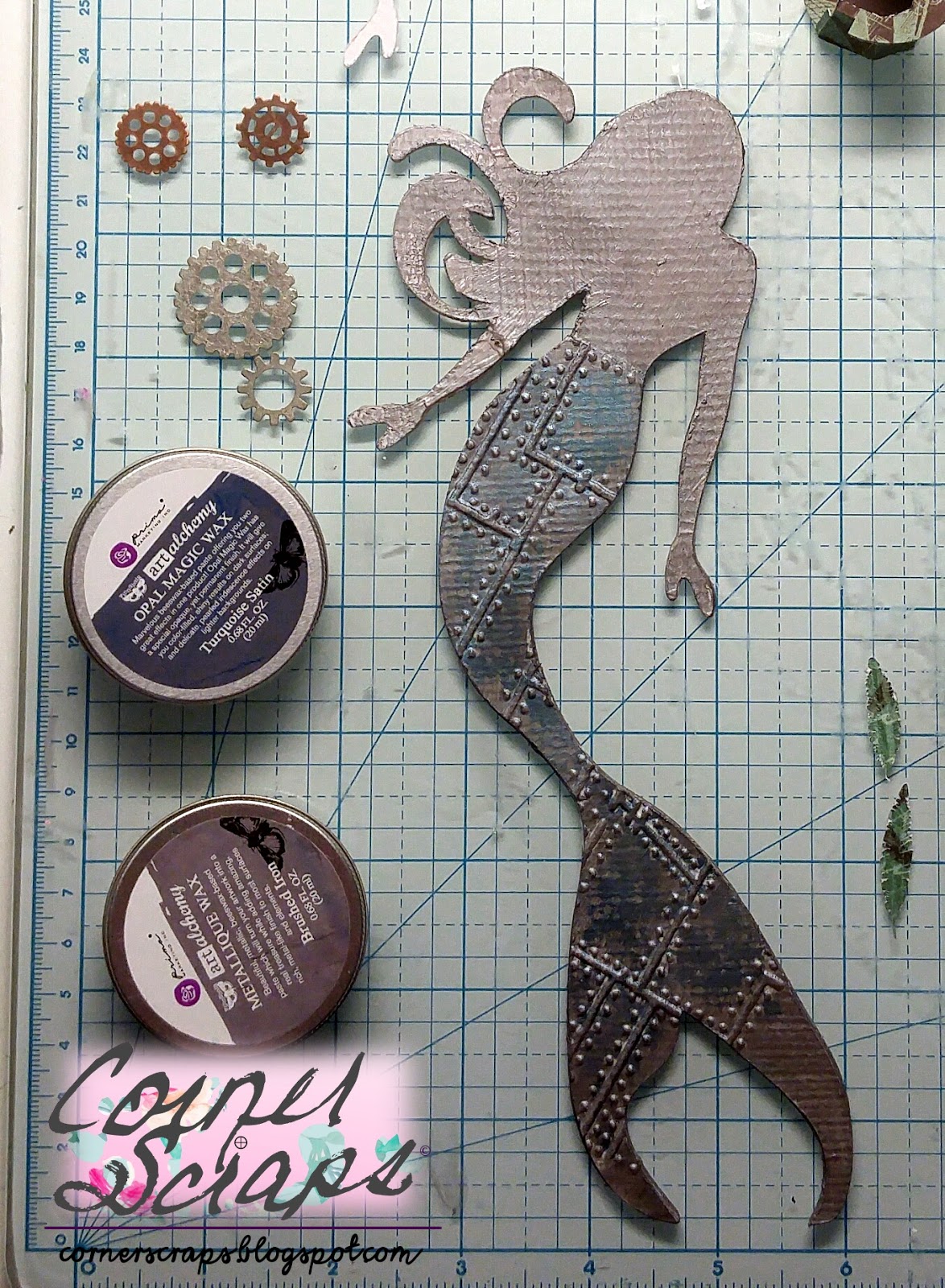 | Adding Prima Finnabair Art Alchemy Metallic and Opal Magic waxes to my mermaid! |