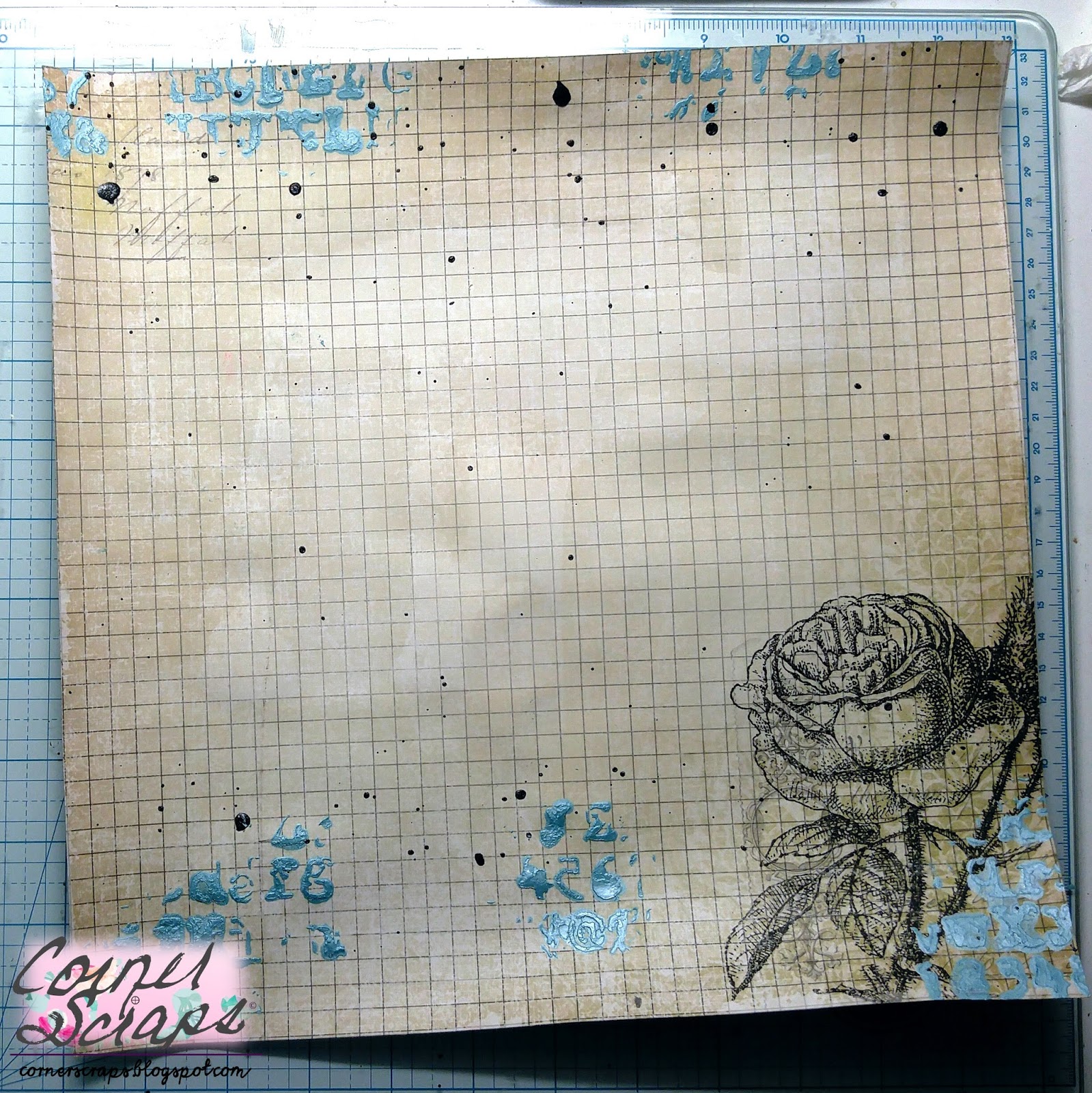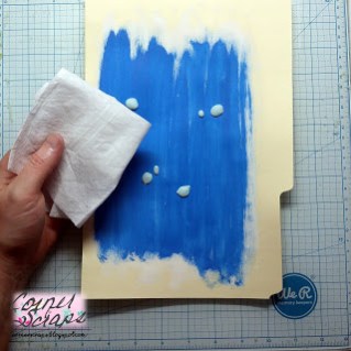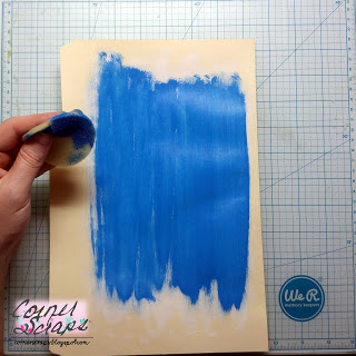 After the gesso had dried on the background I used Distress Spray Stains: Cracked Pistachio and Mermaid Lagoon; Heidi Swapp Color Shine: Sweet Mint; Shimmerz Coloringz: Well Blue Me Down and Oh Say Can U Sea; and Shimmerz Vibez: Jeni B Bleu. I just sprayed rather randomly, drying between layers of colors, until I got what I wanted.