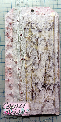 As a side note about how that riveted metal was made, go watch Mixed Media ATCs with Opal Magic Wax by Keren Tamir!