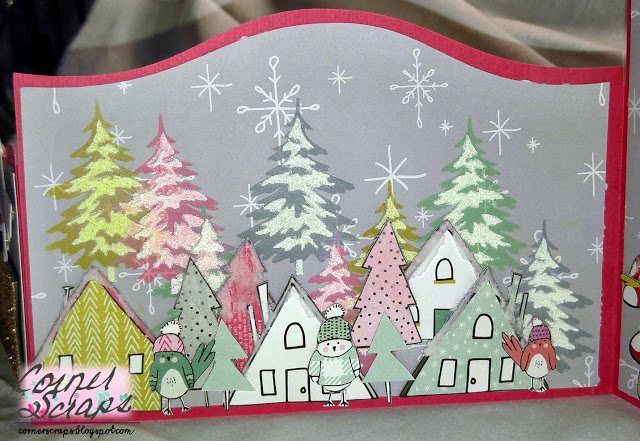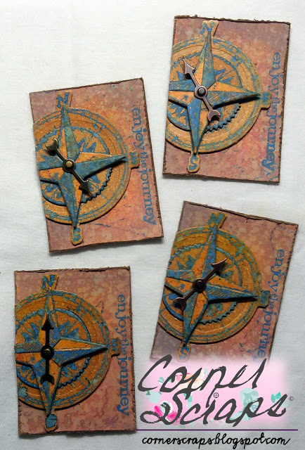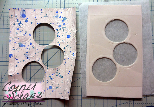 With the green grass paper I cut out my leaves and put on a light coat of Peeled Paint Distress Oxide, and spritzed with water to “activate”!