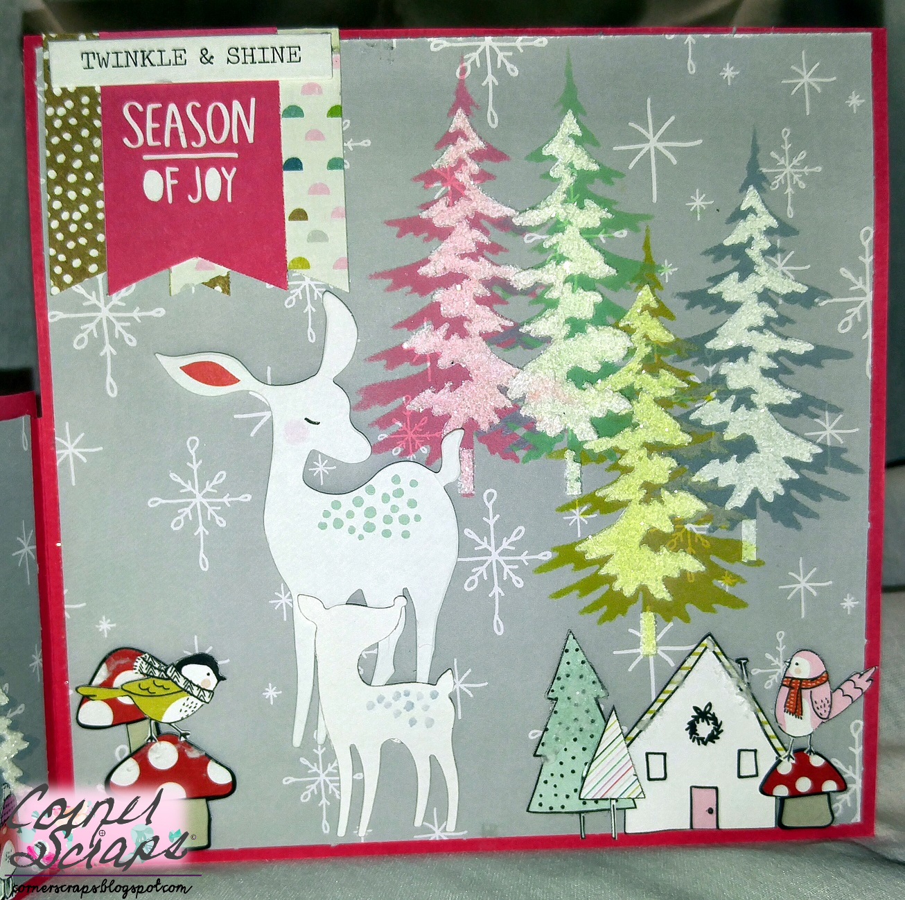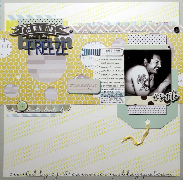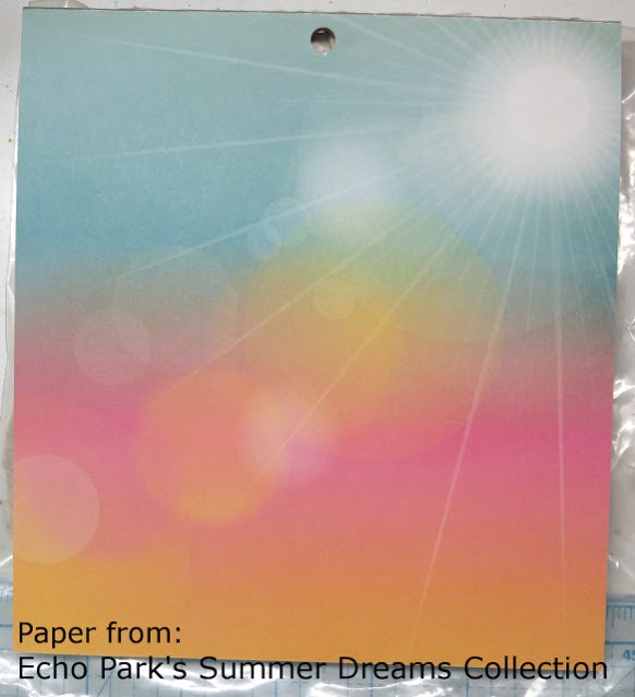 - Paper: Medowbrook “Touch The Sky” (inside clouds) and “Starlit Sprinkle” (blue/white dot under photo), and The Happy Life “Ombre Sky” (background). All designed by Kim Watson.