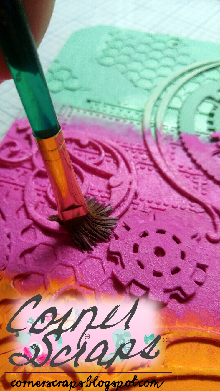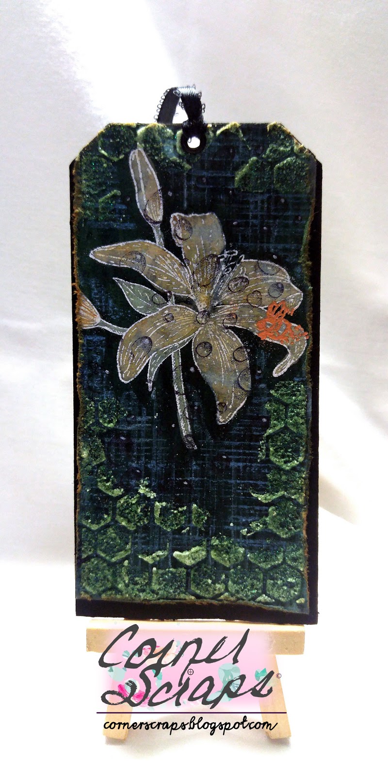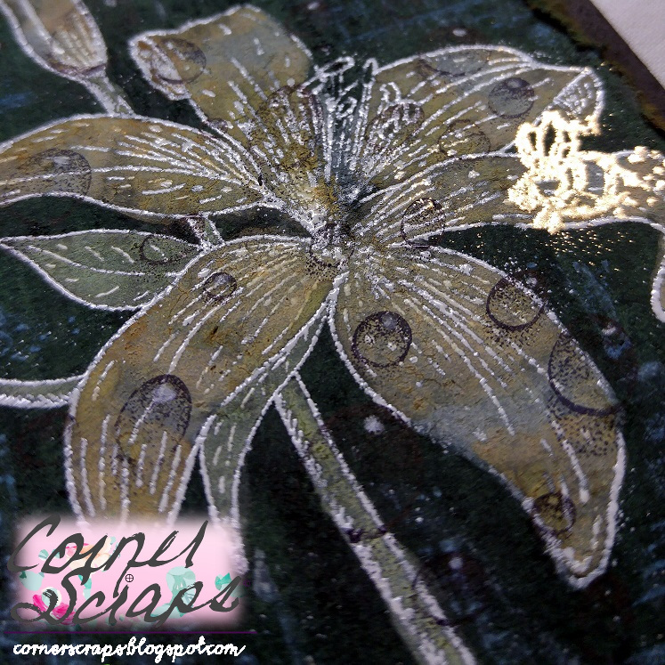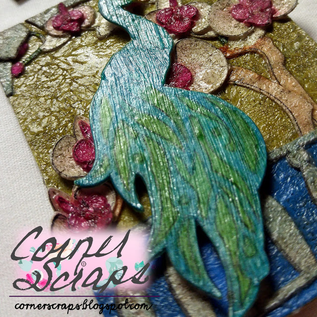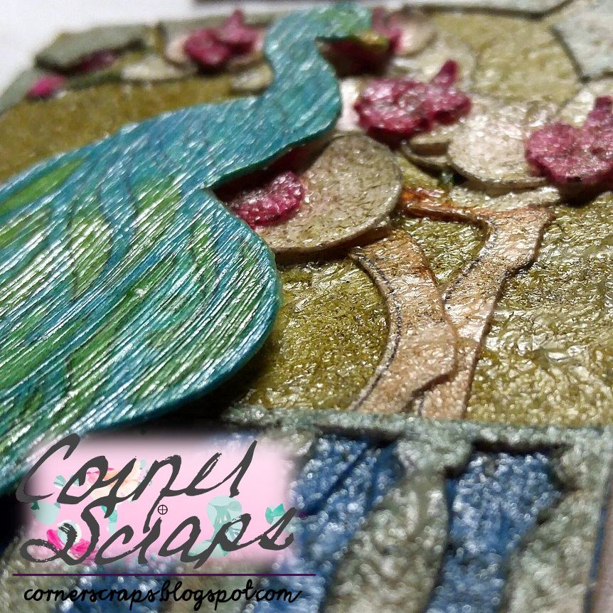 | Some Peeled Paint Distress Oxide helped my green grass paper become tropical leaves! |