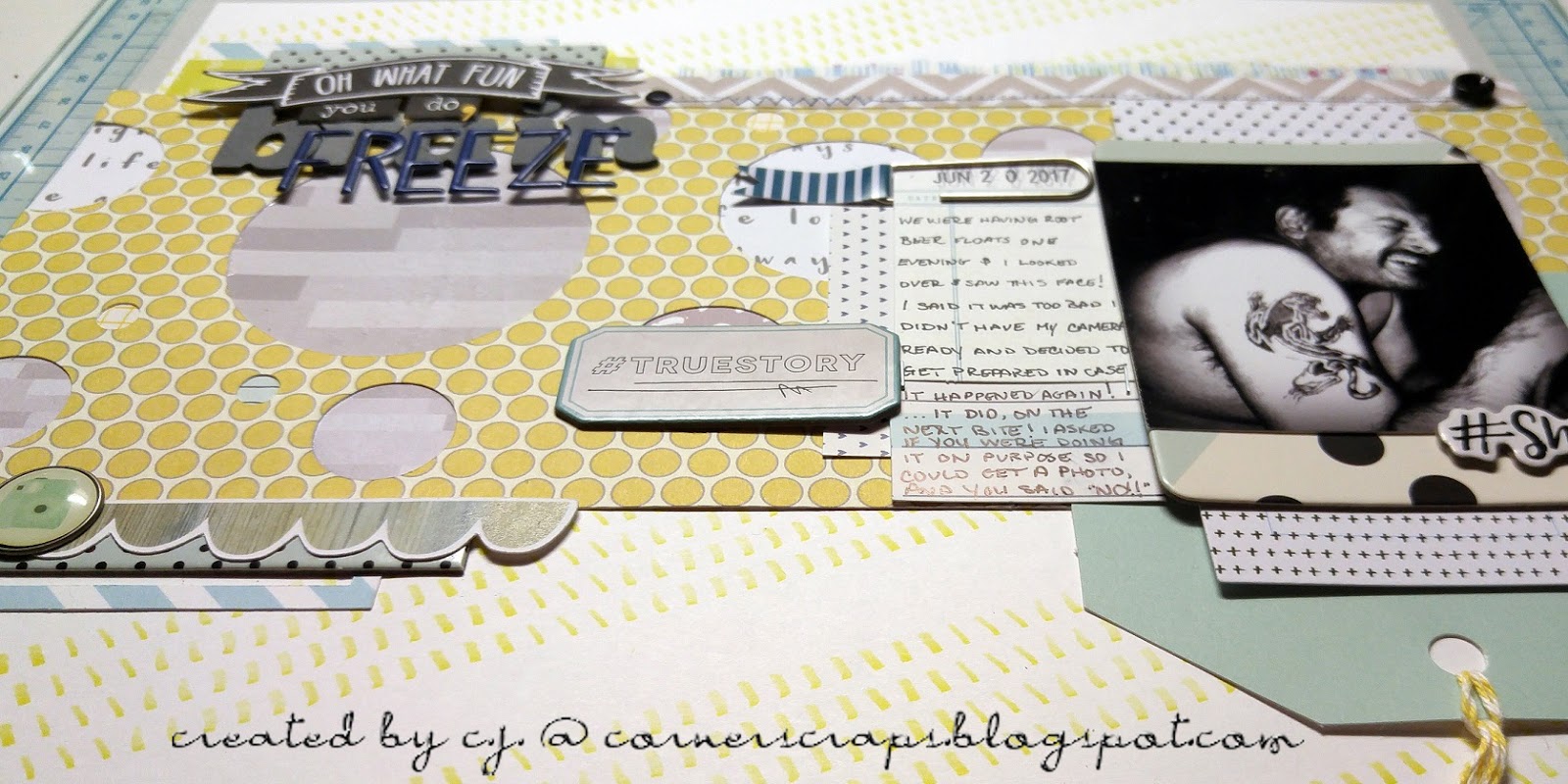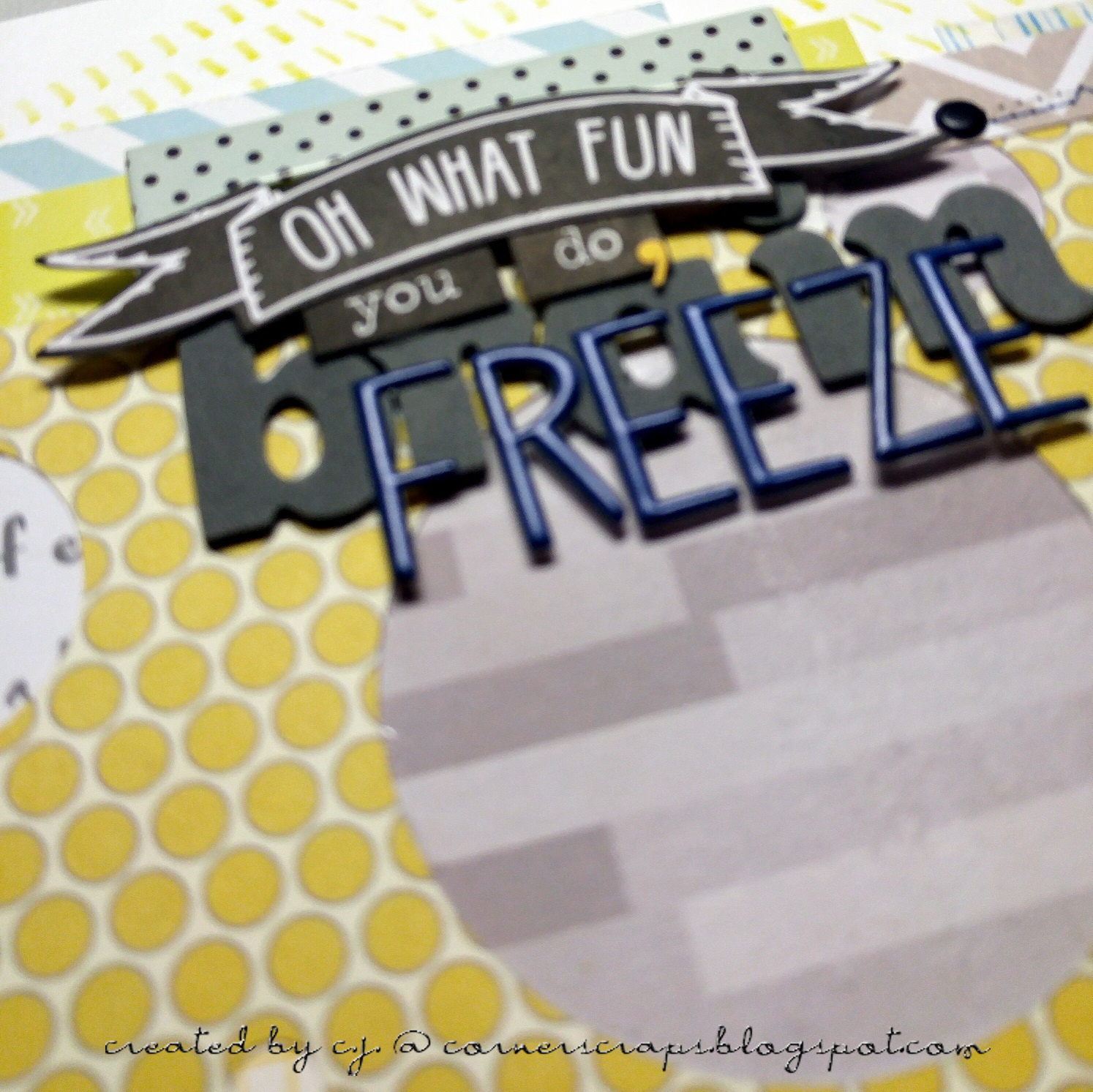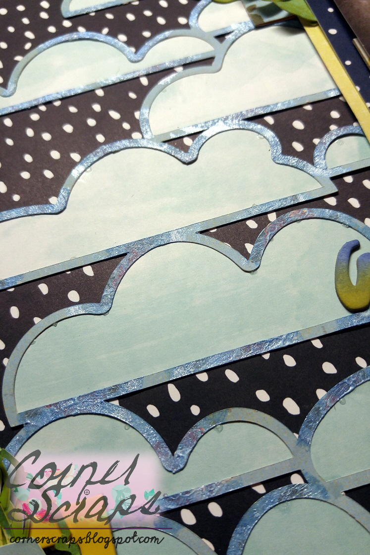 As you can see, that floral paper became the outlines for the clouds! I used some Shimmerz: AcriTonez: 3 Sheets To The Wind and some Shimmerz: Anchor’s Away! It did a good job of hiding the flowers, which would have just look weird on this layout!