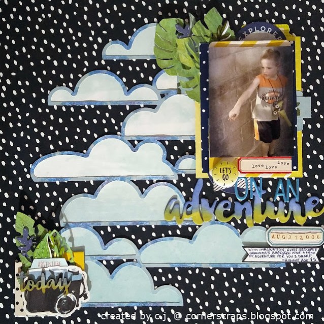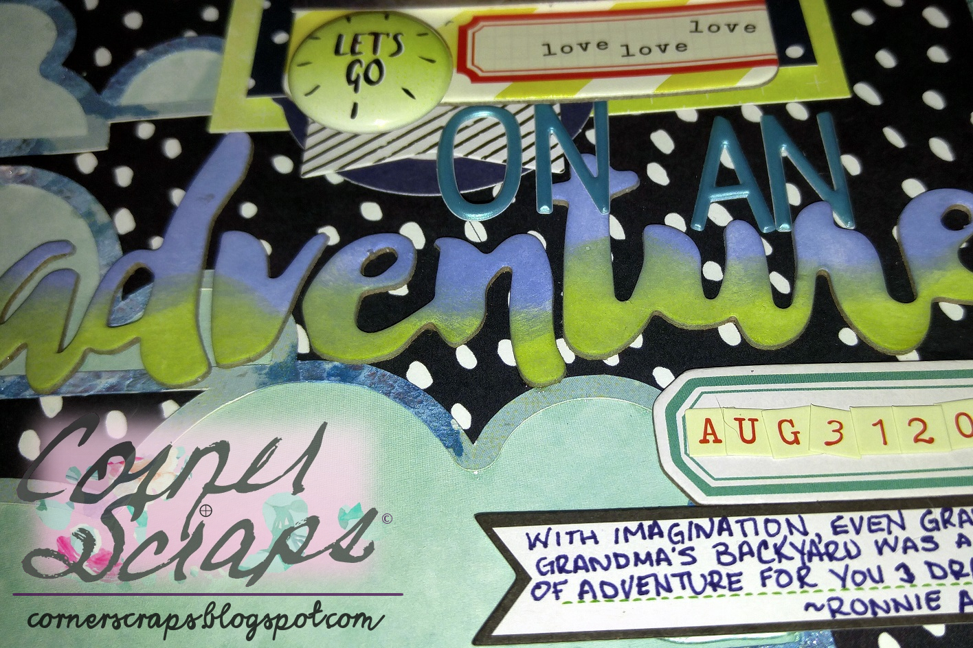 | Close-up of the title area! I love how the Distress Oxides came out on “Adventure!” |