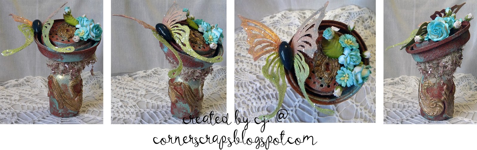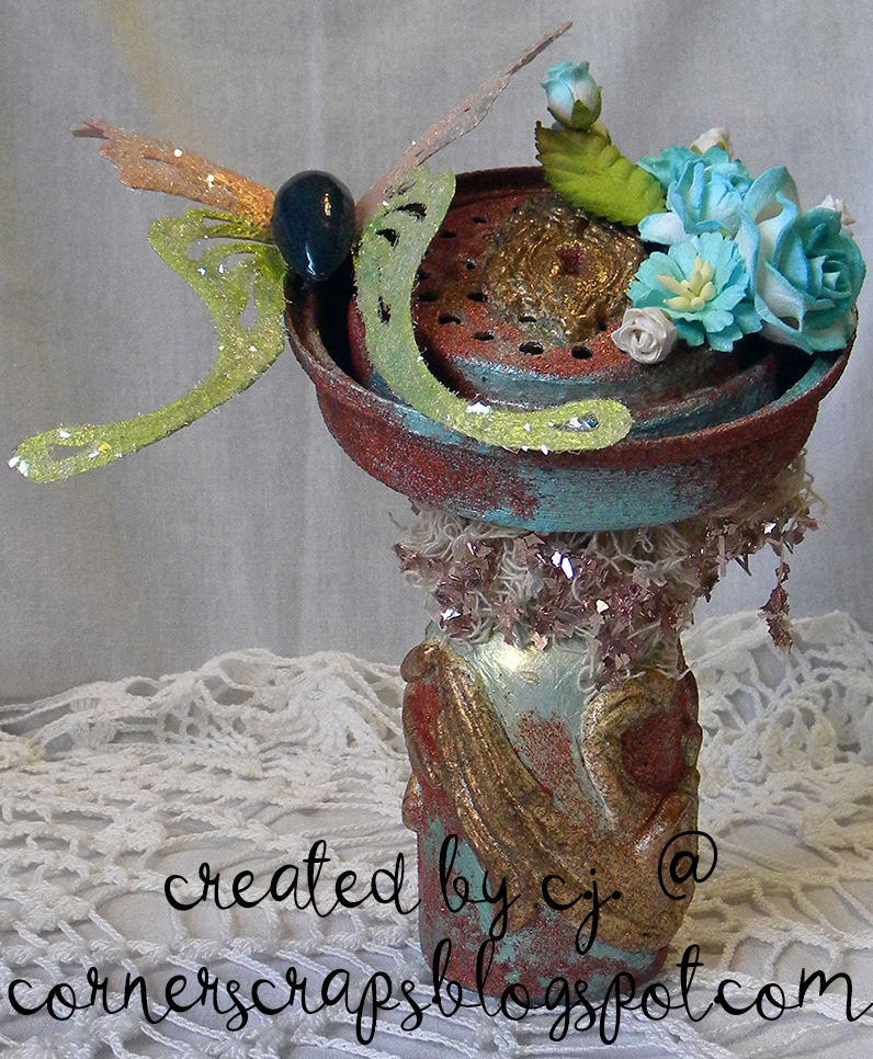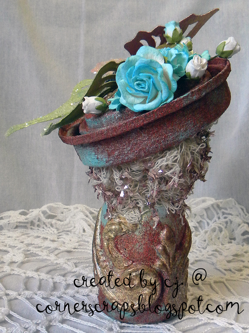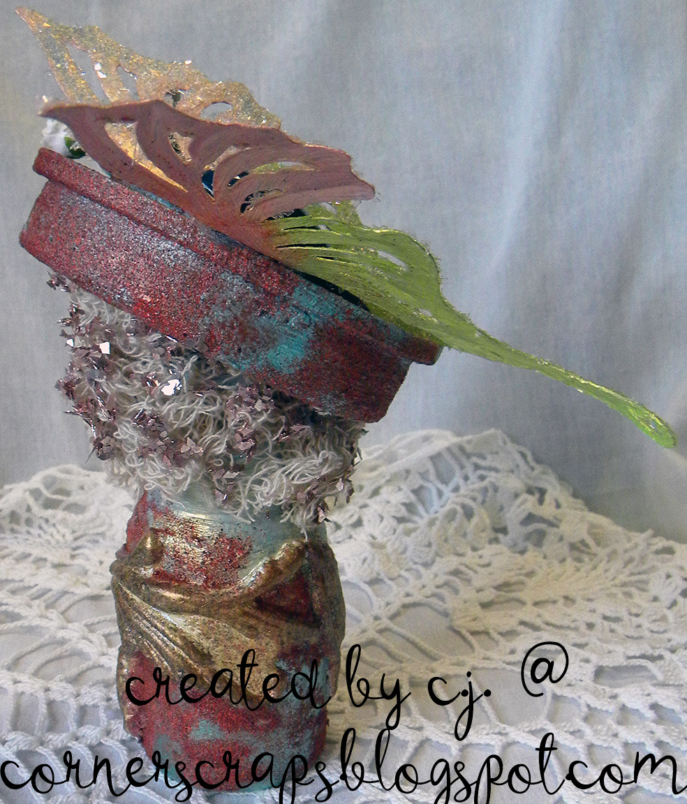 An altered jar I made, mostly just to see where it would go, but also entered in the May (2018), Reneabouquets Mood Board Challenge on Facebook. |