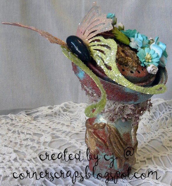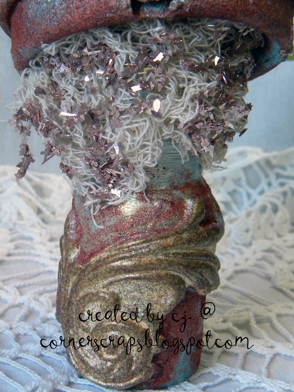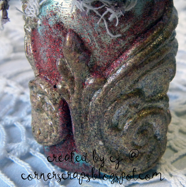 After I added the Moulds to the jar, I coated everything with white gesso, then started layering on the paints & when I thought that was too “bright” I decided I should FINALLY try out the Baked Textures!