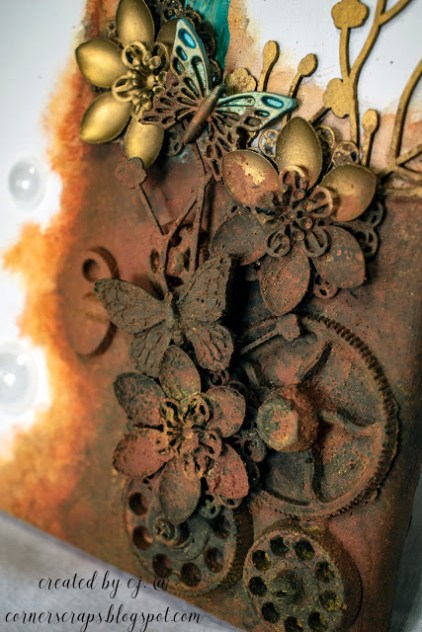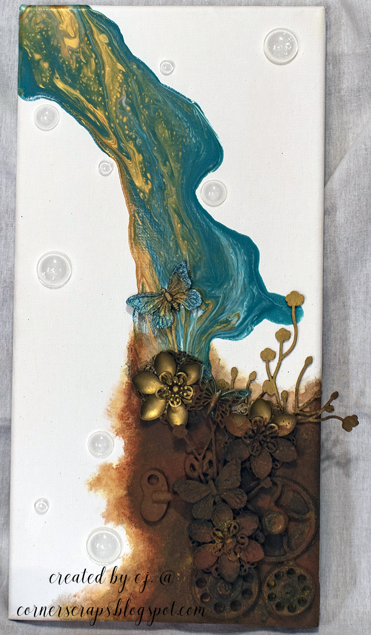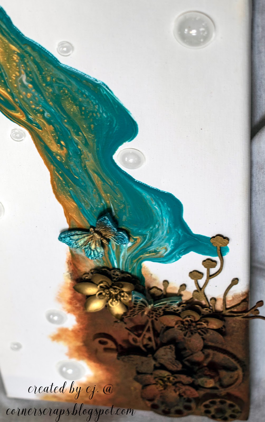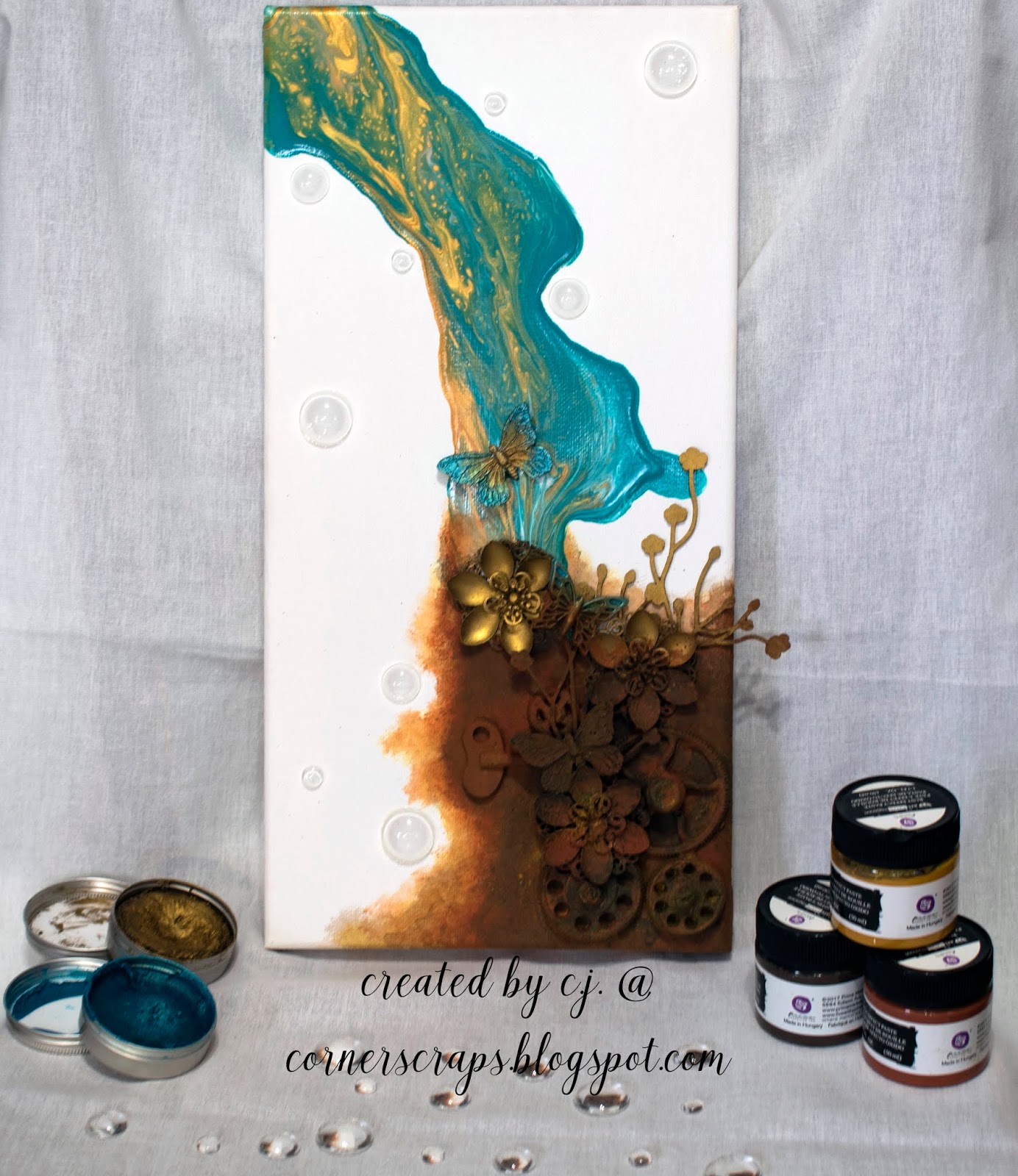 This month the main challenge over on the More Than Words Blog was to be inspired by “Fantasy & Wings.” For me, fantasy always makes me think of fairies. If it’s fantasy, there’s going to be some kind of fae involved! This month I also had pastes on my mind, and I happen to have a nice set of Finnabair’s Fantasy Rust Effect Paste…which goes with the fact that I also love using purple, teal (turquoise), and blue together…especially with fantasy!