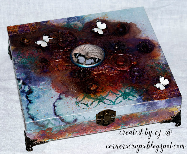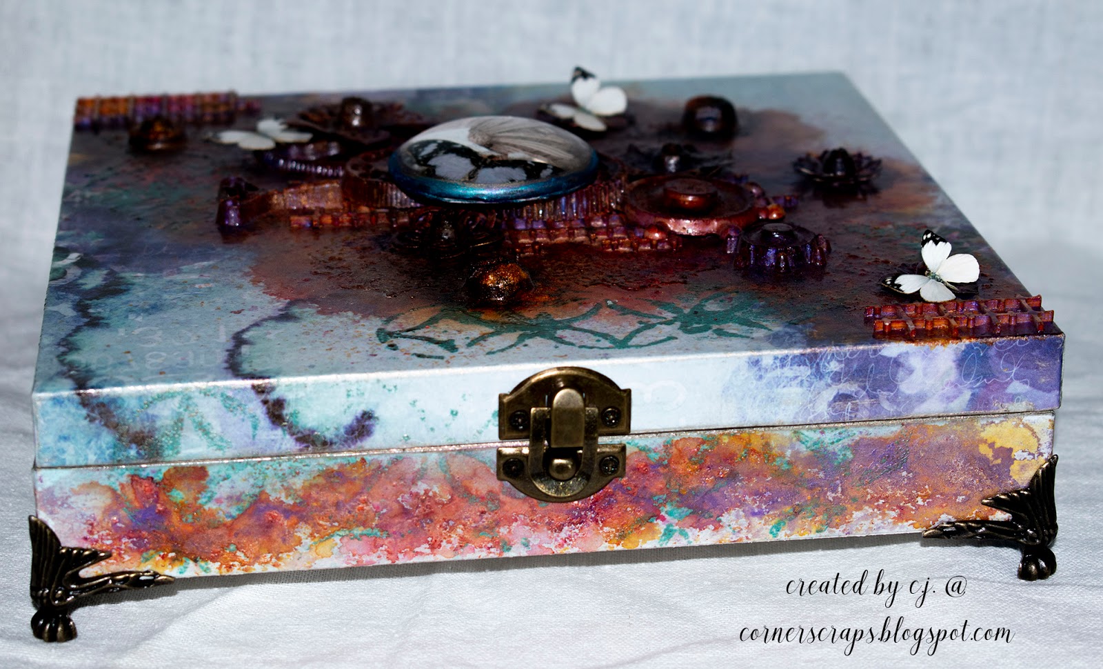 After all that was dry I added the feet, hinges, and latch, then the butterflies and cabachon.
