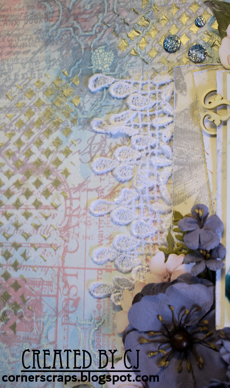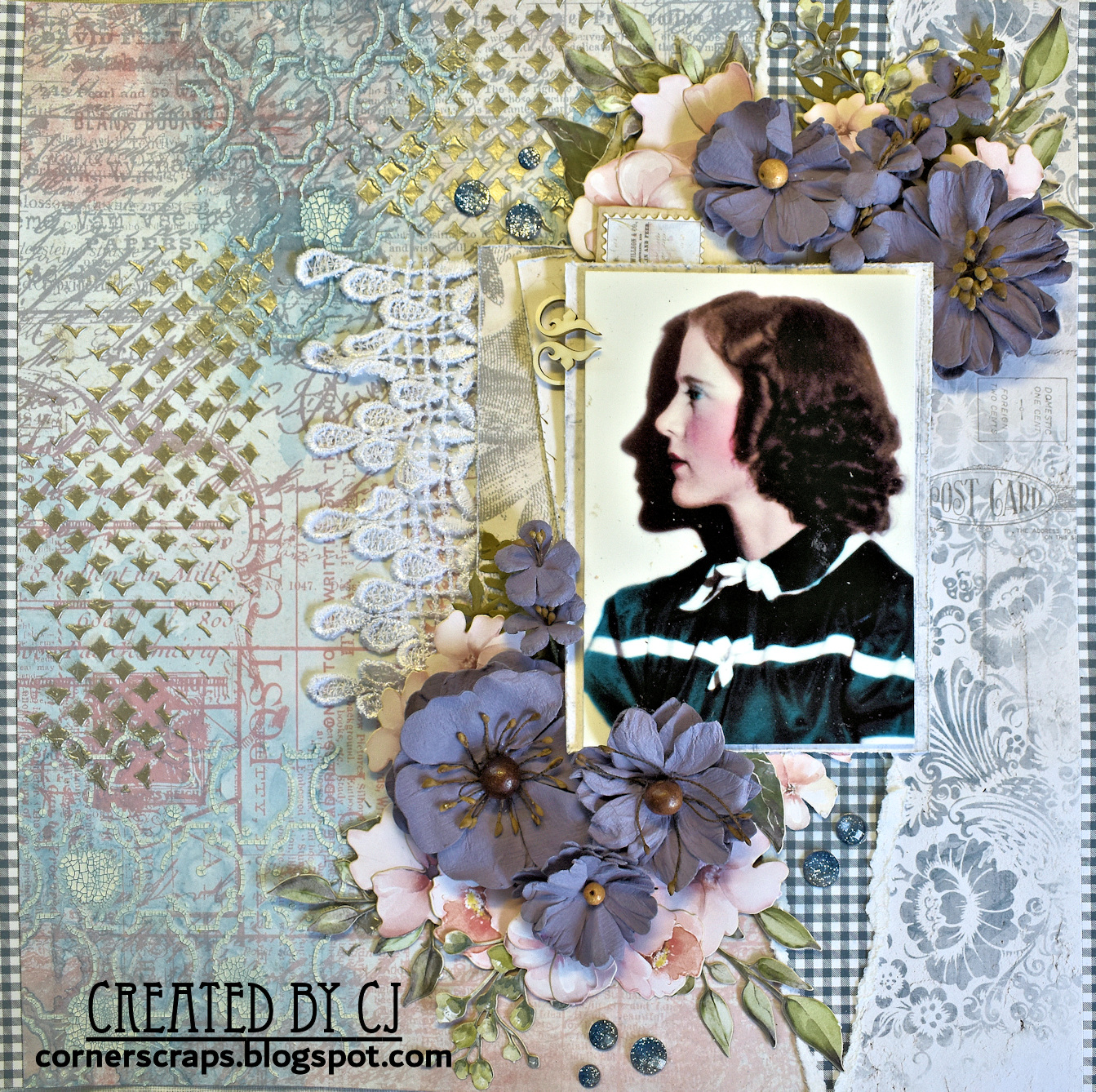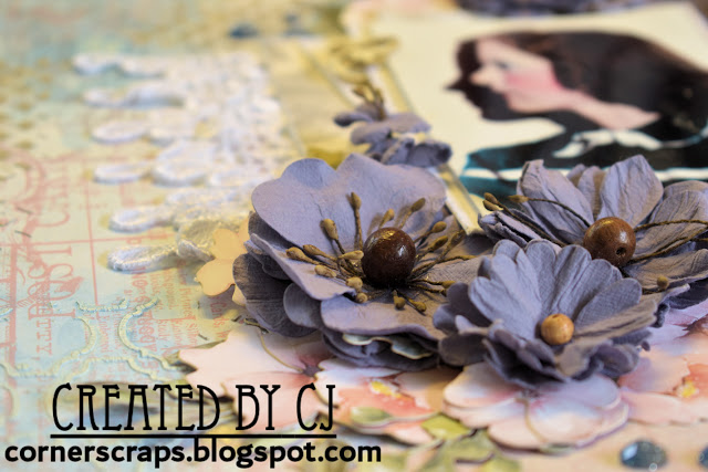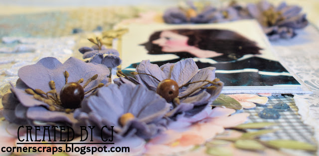 I just love 49 & Market, and those laser cut shapes made this layout go together much faster than fussy cutting flowers!!