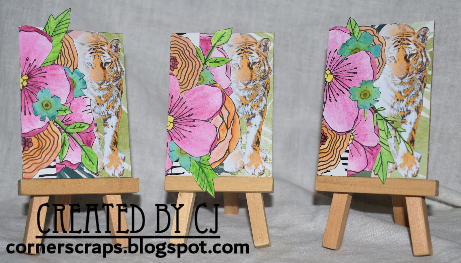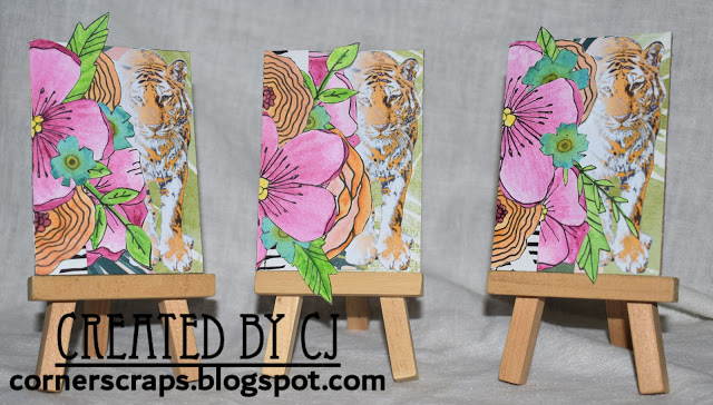 There isn’t really anything overly complicated on these, just some coloring/watercoloring with some Scribble Sticks, fussy cutting, and gluing! OH! The tigers weren’t fussy cut, I used the print & cut feature of Silhouette Studio with my Cameo 3.
