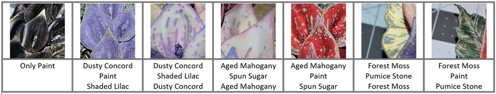 Here is a chart listing the color combos I used for the flowers and leaves.