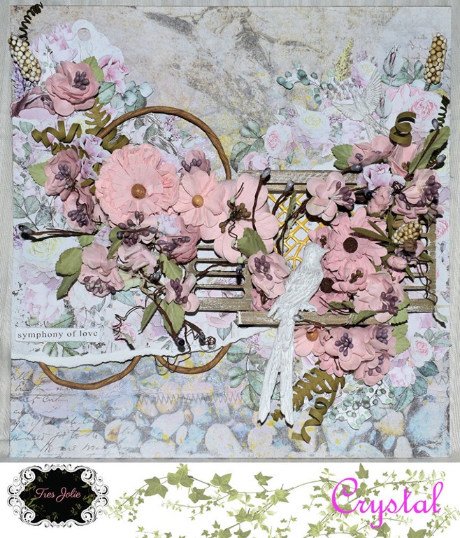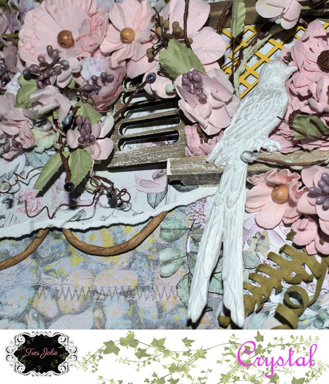 Items from previous Tres Jolie Kits: 49 & Market – Pale Lavender Garden Vine & Natural Blush Seaside Blooms; Prima Shabby Chic Treasures – Birds