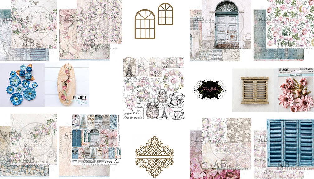 Tres Jolie will host a different challenge each month. This month we have a mood board challenge. This is mood board can easily be used to create a card, tag, layout or maybe an altered project. We want to see what you do with our kit(s) and our mood board.
