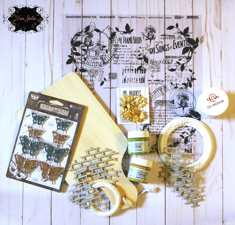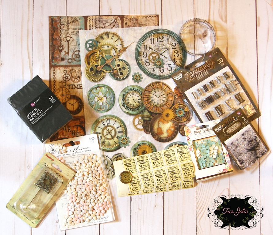 In addition to the March Mixed Media Kit (*From previous Tres Jolie Kits), I used: