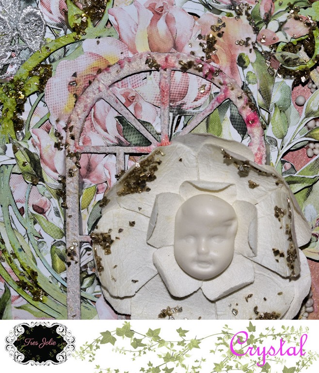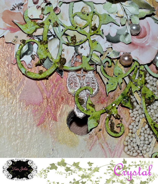 On the flowers of the chipboard roses from the kit I used a combination of two embossing powders from my stash, and again used the embossing powder from the kit on the stems and leaves.