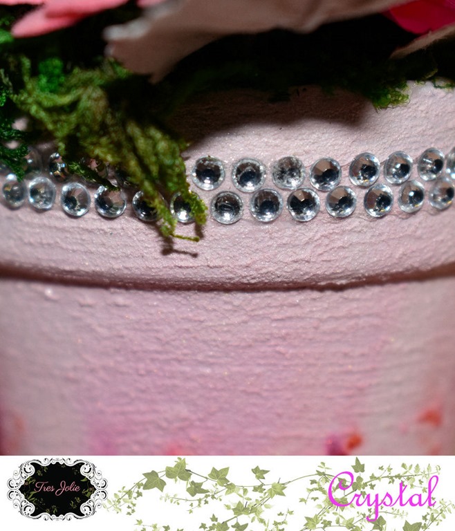 Even though the bling from the kit is self-adhesive, I added some extra FabriTac before wrapping the tops of the pots, just to be safe!
