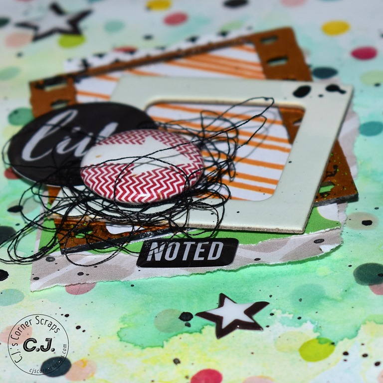 I pieced together the smaller “left-over” pieces to cover the “manila” colored tags that came in the kit and added some string from my stash.