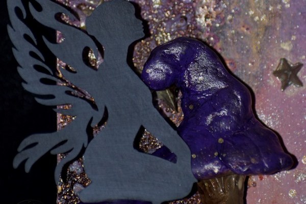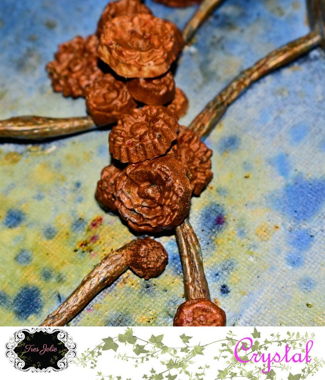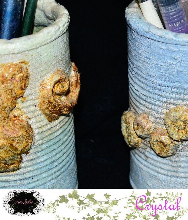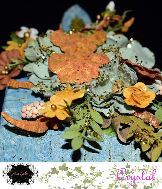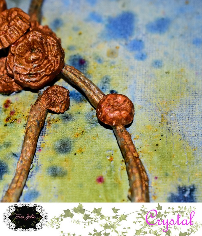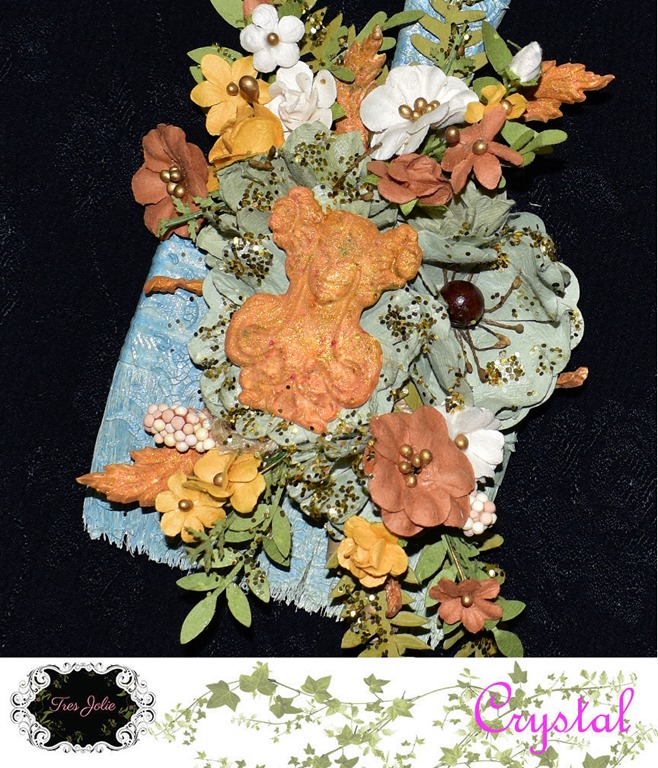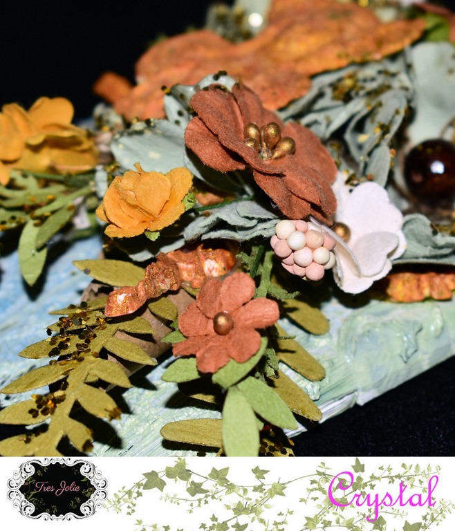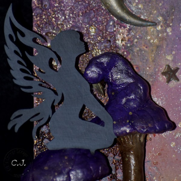 I layered some gilding flakes on top of some homemade texture paste using Ranger’s Sticky Embossing Powder, added the “Mermaid Artist Trading Coins” to the base, glued down some shells, used some of Finnabair’s wonderful waxes, and added some 13 @rts microspheres as a finishing touch.