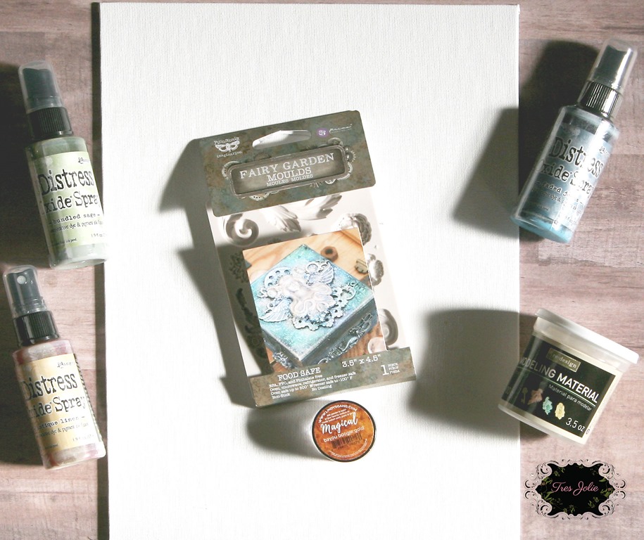 Creative Embellishments Artist Trading Coins, Mermaid Artist Trading Coins, & Seaweed Stencil, 13 @rts “Old Gold” XS Microspheres, Prima/Finnabair Heavy White Gesso, “Burnt Sienna” Liquid Acrylic Paint, “Ancient Coin” Metallique Paint, “Yellow-Blue” Opal Magic Paint, “Bronze Age” Metallique Wax, and “Patina Blue” & “Patina Green” Matte Wax, Ranger Sticky Embossing Powder, Tonic-Nuvo Gilding Flakes “Radient Gold,” “Silved Bullion,” and “Sunkissed Copper,” Simon Says Stamp Clear Embossing Ink, Liquitex Gloss Gel & Gloss Super Heavy Gel, Ranger Heat It Craft Tool, Decor Sand & Shells,