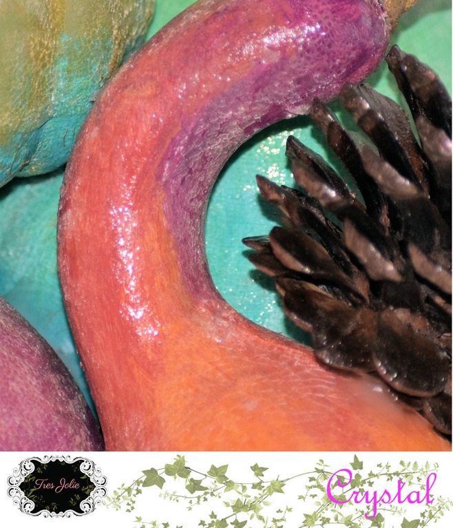 October is almost over, and here in the United States the leaves are in various stages of turning as we are head into our “holiday season.” For my final October project I decided to create a custom autumn center piece using those beautiful Dina Wakley paints and the Nuvo spray found in the Tres Jolie Kit Club October Mixed Media Kit.