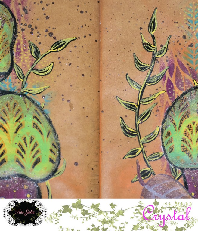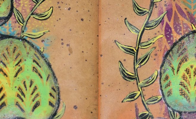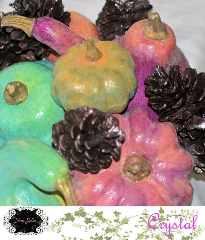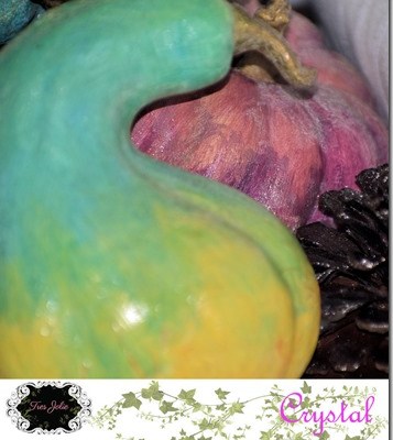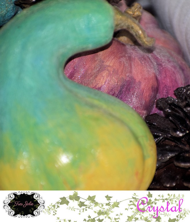 On each gourd and pumpkin I blended two of the Dina Wakley paints; Eggplant with Tangerine, and Peacock with Lemon, except the smallest pumpkin, which is Peacock with Tangerine.