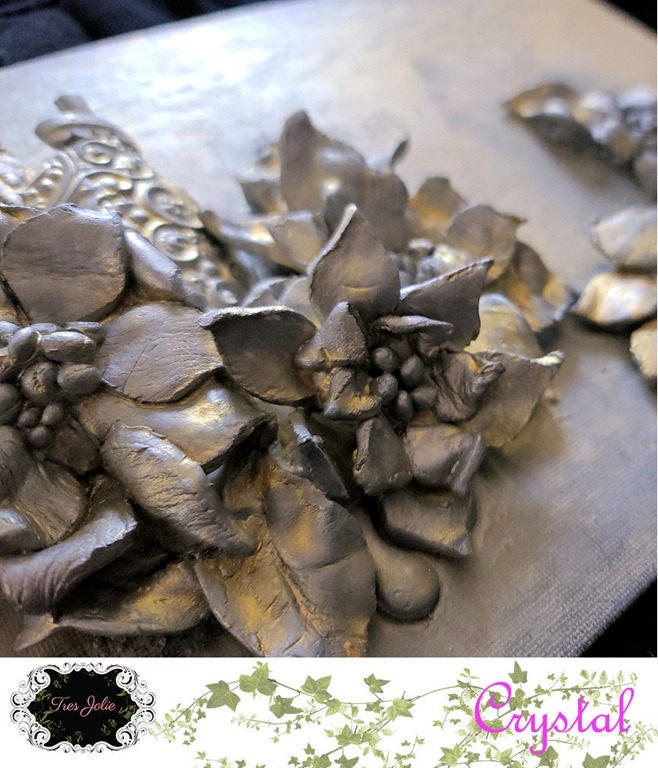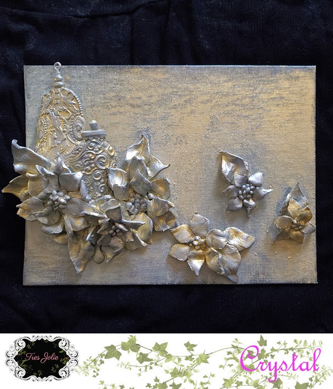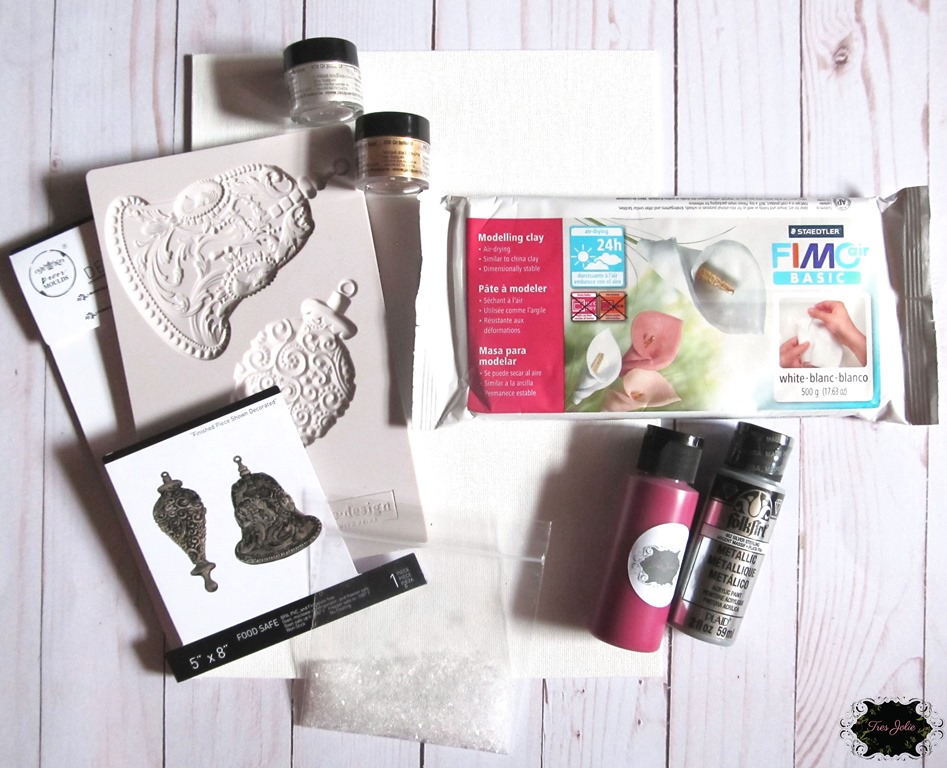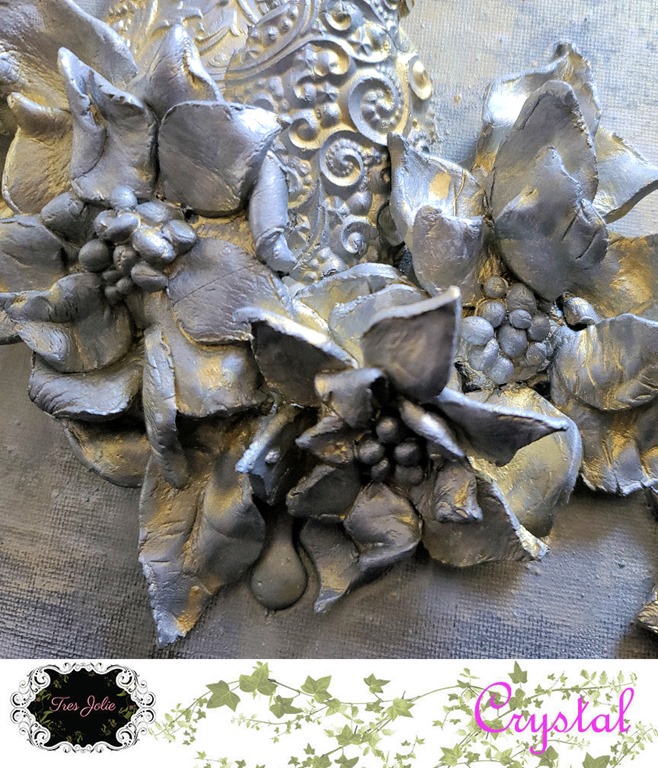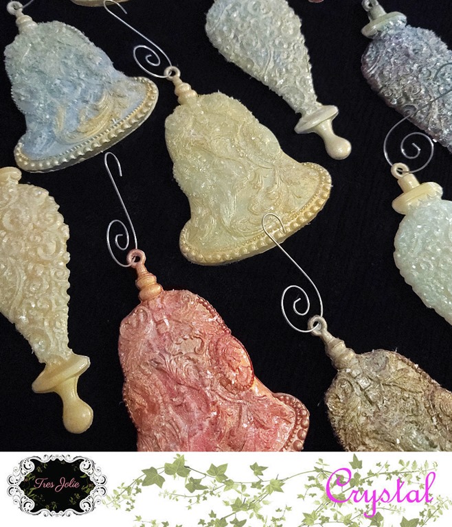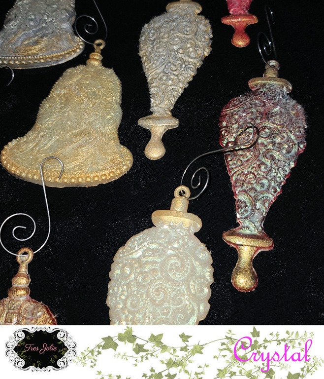 ReneaBouquets “Frozen” Premium Paper Glitter Glass Butterflies, Ranger/Tim Holtz “Clear Rock Candy” Distress Glitter, Tonic Nuvo Gilding Flake “Radiant Gold,” Prima/Finnabair Heavy White Gesso, Liquitex Matte Super Heavy Gel, Ranger Glossy Accents, JudiKins Diamond Glaze, TCW Light & Fluffy Modeling Paste, Ranger Heat It Tool
