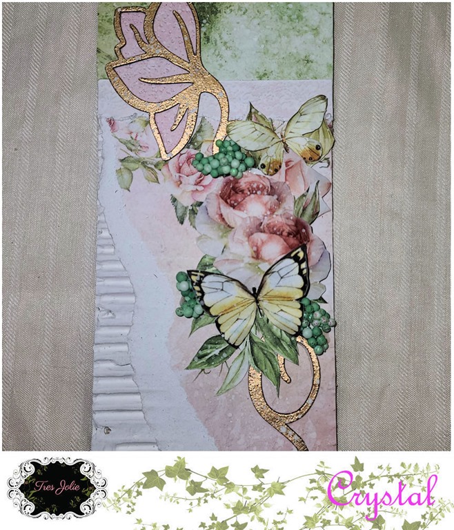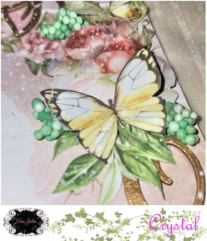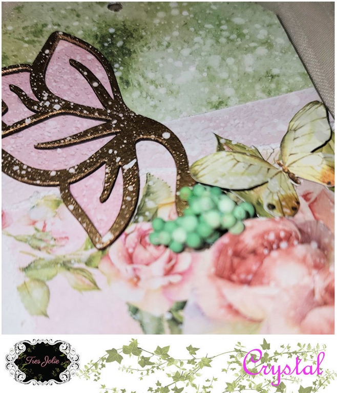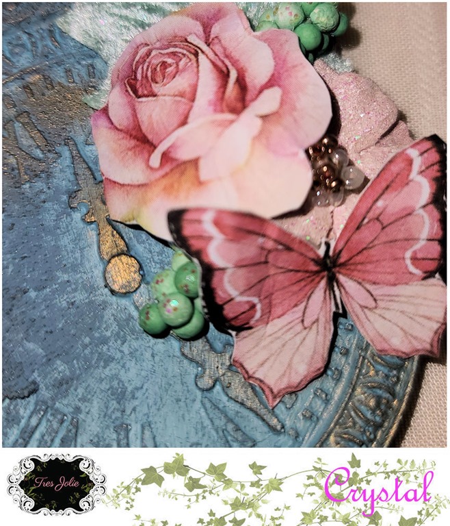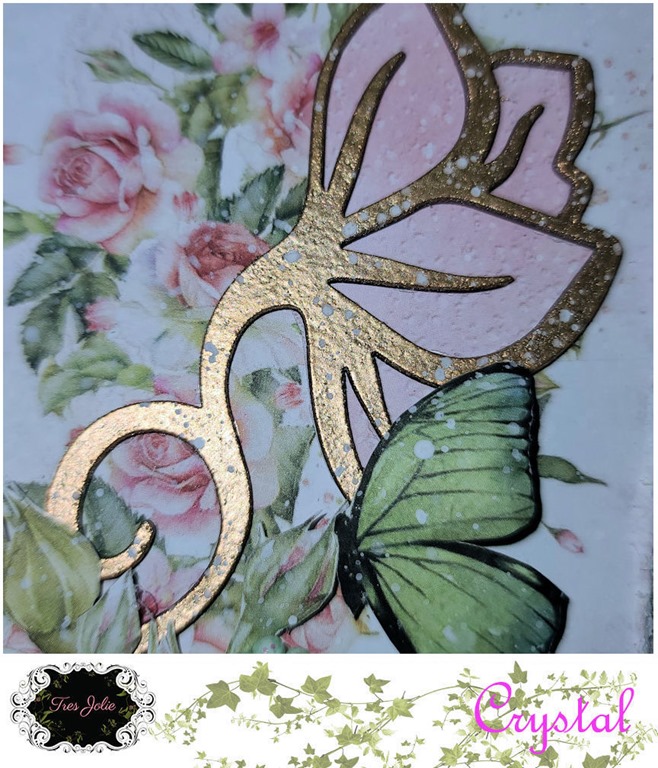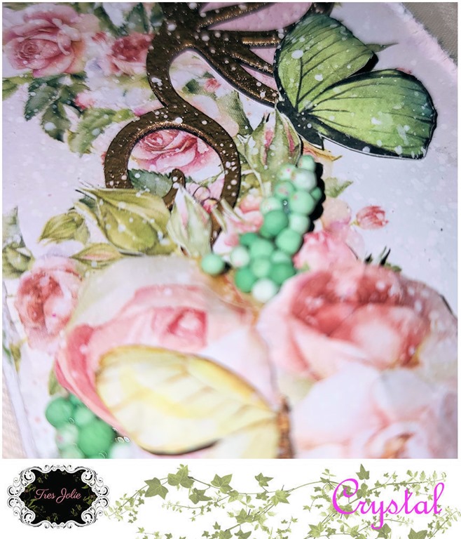 In addition to the Finnabair stencil, I added some “Bee Hive” Beautiful Bits to my background for some added texture.