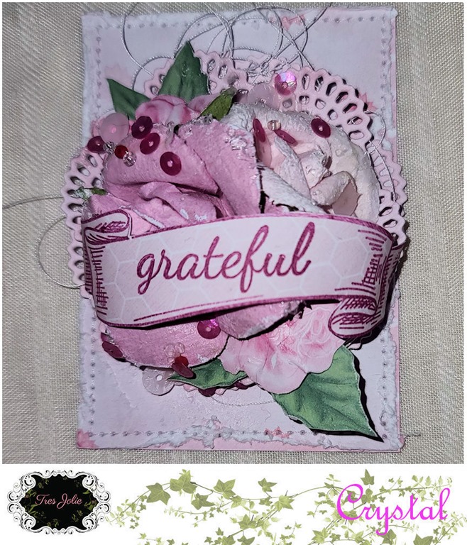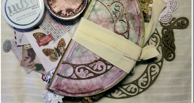 “Envelope Gift Mini Album” – Silhouette Store ID# 240883 by Paige Taylor Evans; Pink Paislee/Paige Taylor Evans: 19 & Turn The Page 08; Prima/Finnabair: Heavy White Gesso; Ranger/Tim Holtz: “Picket Fence” Distress Paint, “Salvaged Patina” Distress Oxide & Embossing Glaze; Simon Says Stamp Clear Embossing Ink; pink & white bakers twine; Scotch ATG; white thread; E6000; magnets; Art Glitter Glue