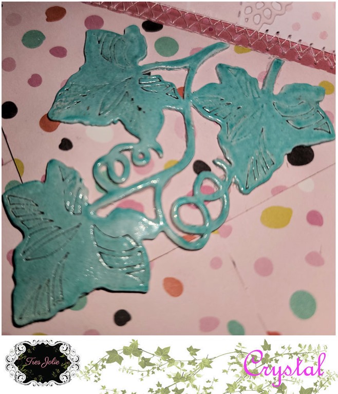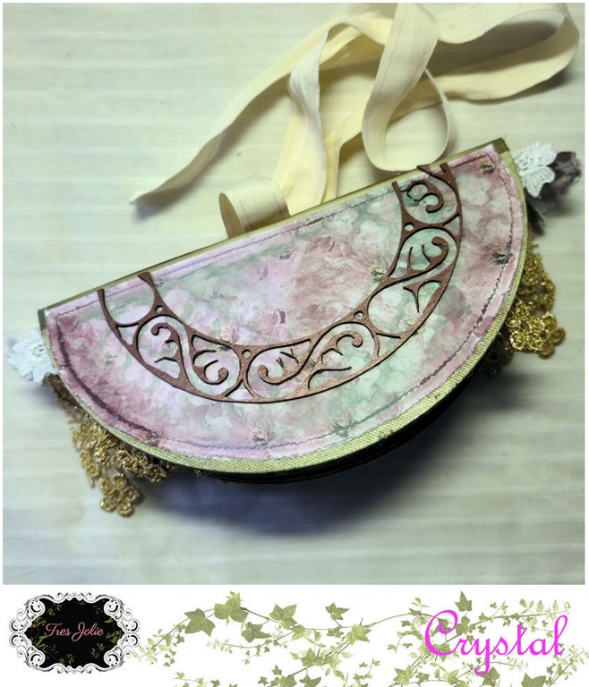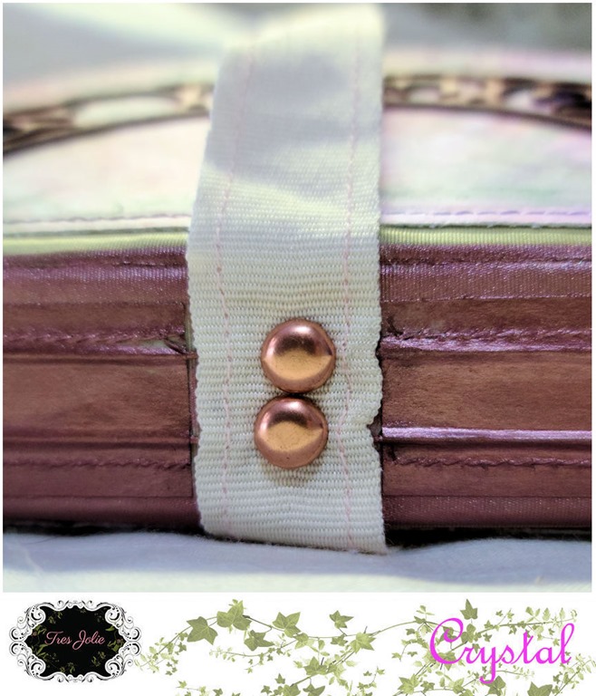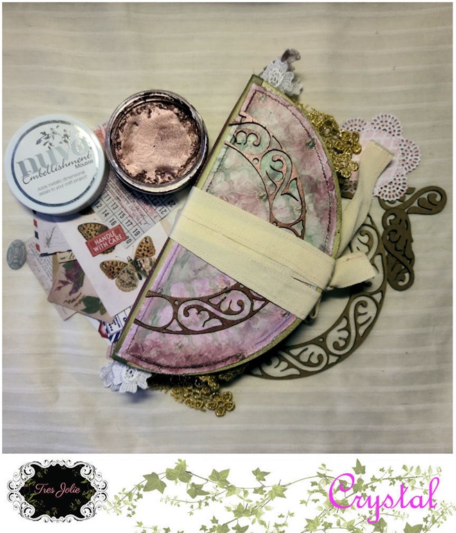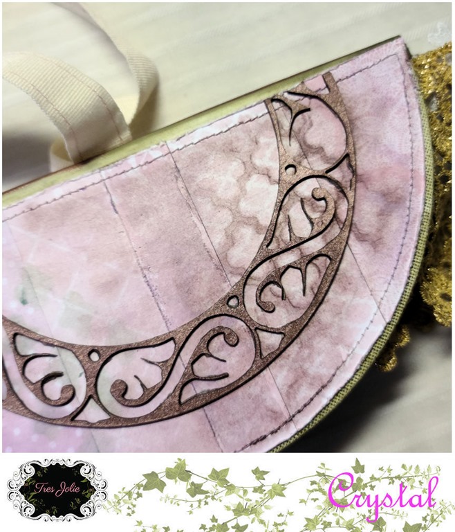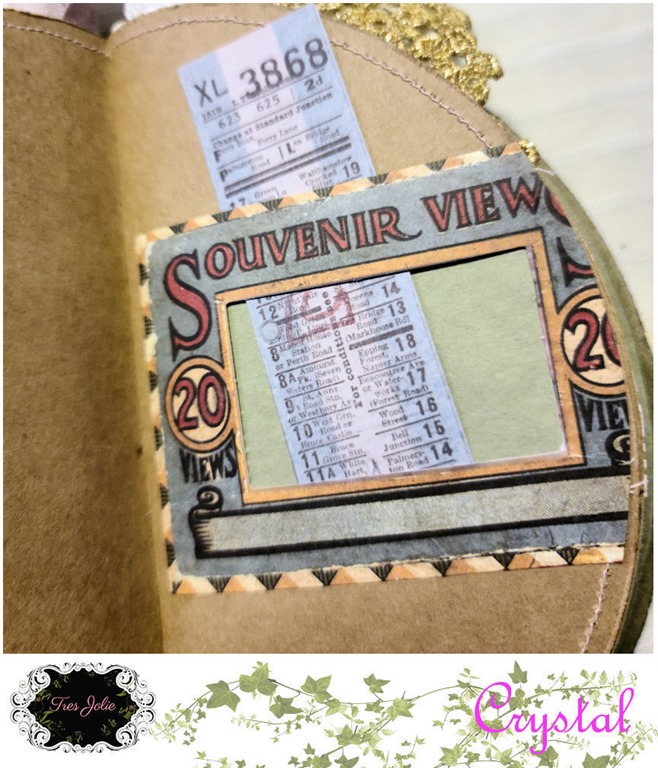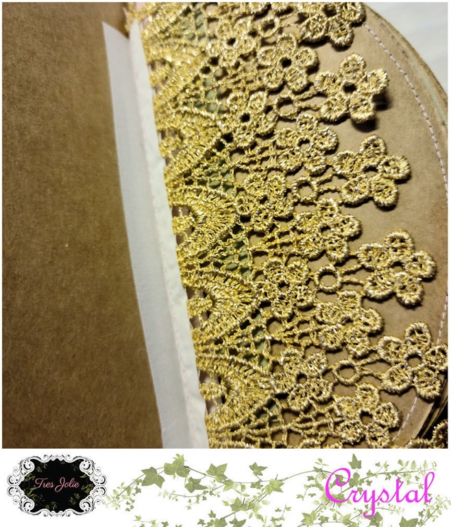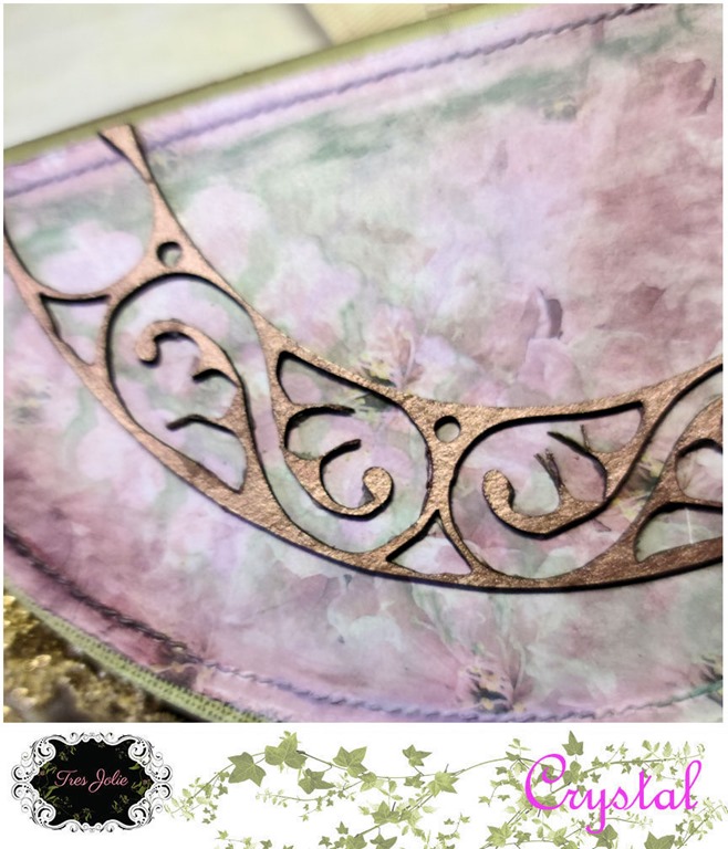 I just had to add in these beautiful Tres Jolie Chipboard leaves from the kit! I found the angle of the leaves made a perfect match up for the flap of the envelope. The addition of the leaves, however, are also the reason I added a button a twine closure, like the one on the right flap, under the outside bow and band closure!