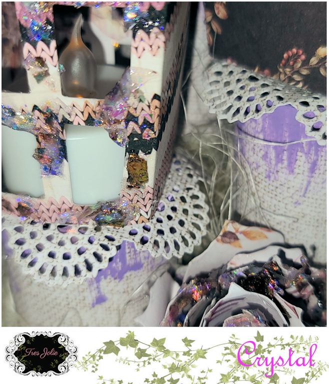 For my final project of November for Tres Jolie Kit Club, I am bringing you some fabulous home décor—Tealight Lanterns—using the Cards, Tags, & More Kit and even a bit of the lavender paste from the Mixed Media Kit!