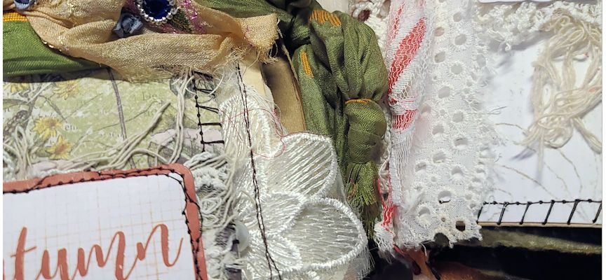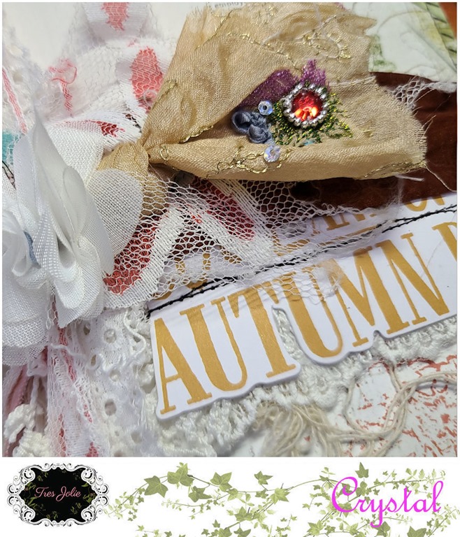 I have layers of bits of lace and fabric on my closures and even added in some pops of blue with some 4mm silk ribbon.