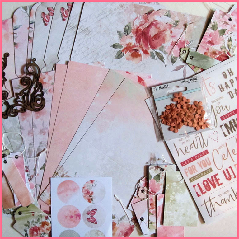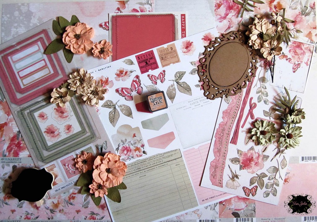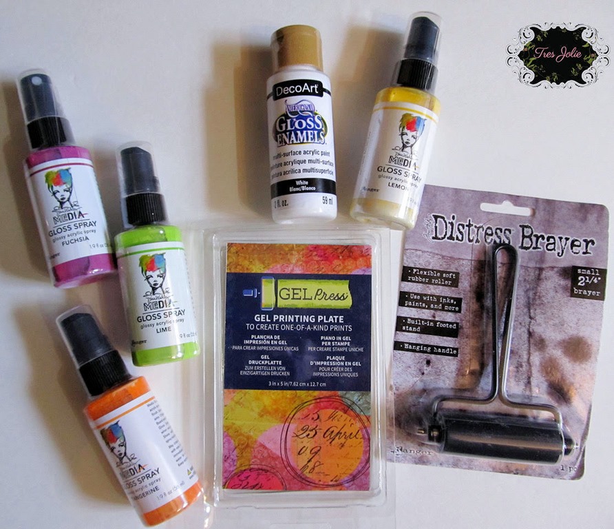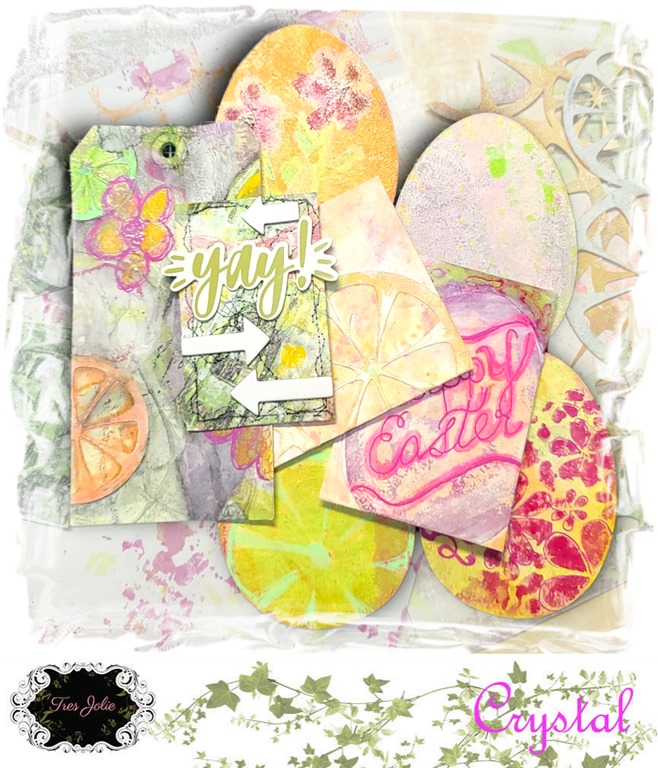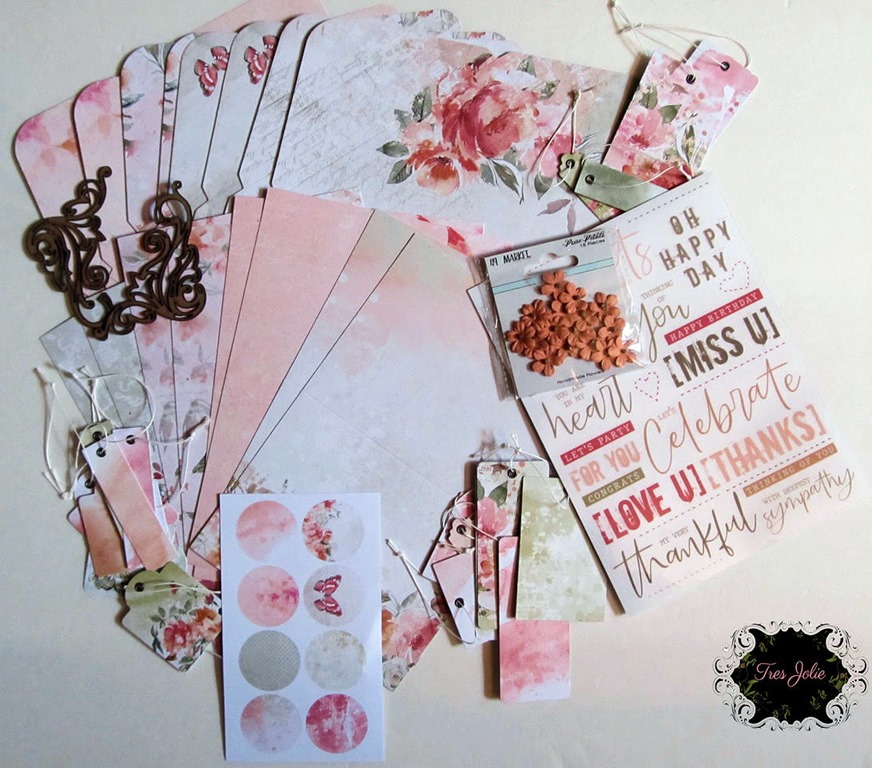 In addition to the April Cards, Tags, & More Kit & Mixed Media Kit (*from previous Tres Jolie Kits), I used: