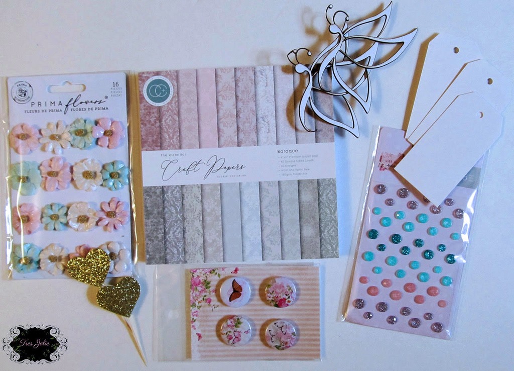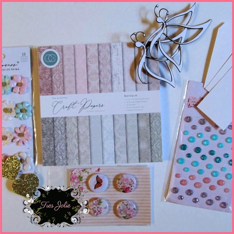 In addition to this month’s Cards, Tags, & More Kit (*from previous Tres Jolie Kits), I used: