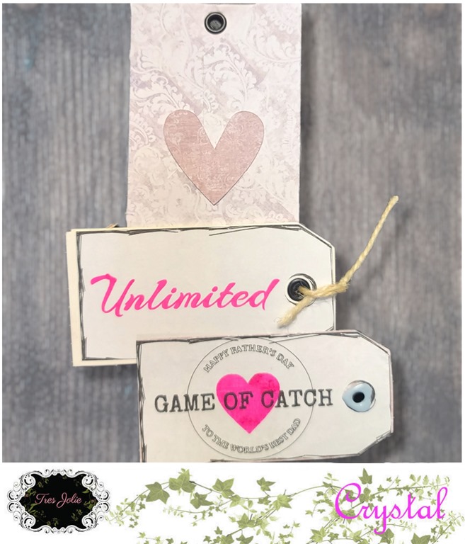 In addition to the “single-use” coupons, I thought making “Unlimited” coupons would be a nice addition. I have some that are sized to fit the tags from this month’s kit – Unlimited Bear Hugs, Game of Catch, and Spending The Day Together – and I turned them into sketches in Silhouette Studio, but you can also print the “Unlimited Tags” PDF on DropBox if you would like (For Personal Use Only). I have a little envelope I made for them with the top flap folded back and glued open, and a hole with an eyelet so the tags can be tied to the envelope, to keep everything together.