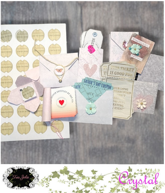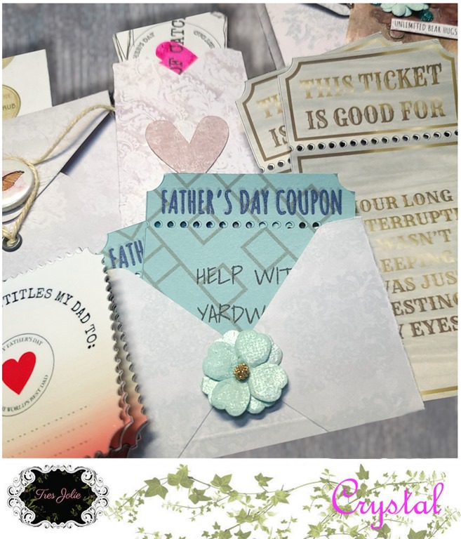 Since I did Mother’s Day Cards at the beginning of the month, I decided to do some Father’s Day Coupon’s and gift envelopes as my final May project using the May 2022 Cards, Tags, & More Kit from Tres Jolie Kit Club. I created a few different designs to use as examples and have some example phrases to use with your coupon book. There are links to free PDFs for the different coupons throughout the blog, and over at CornerScrapsStudio you can get the PDFs, STUDIO3, and PNG files from my Etsy shop. I never “fully” completed a coupon book – the closest is my “Unlimited” tags – because I don’t have a personal use for Father’s Day coupons, and all our kids are old enough to worry about it themselves! (by old enough, I mean they no longer have any age restrictions on any purchases