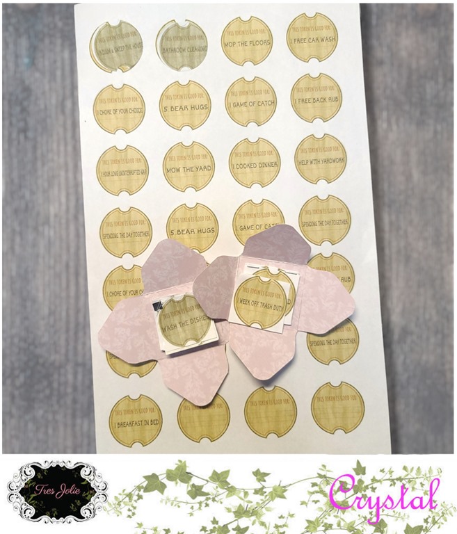 First up are my “Vintage Gold” coupons. I designed these coupons to look as though they are on old paper with gold font and trim. These examples are printed on some HP Premium Choice LaserJet Paper; a type of high-resolution paper designed for business documents that need clear, crisp images. You can get the “Vintage Gold” PDF on DropBox (for personal use only, please!) if you would like to print them out. (**NOTE: All PDF files offered throughout this post are not offered, created, or owned by Tres Jolie Kit Club. I am the creator and owner of the files and offer the PDFs for your personal use.)