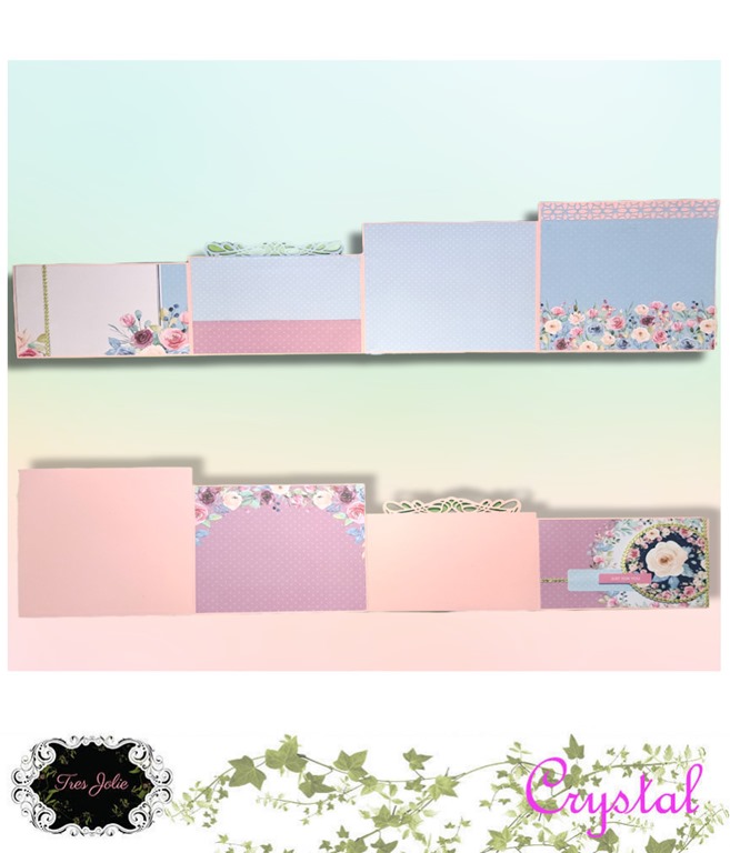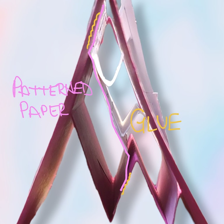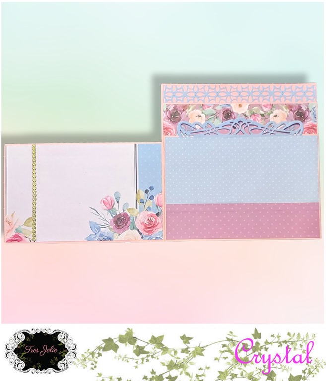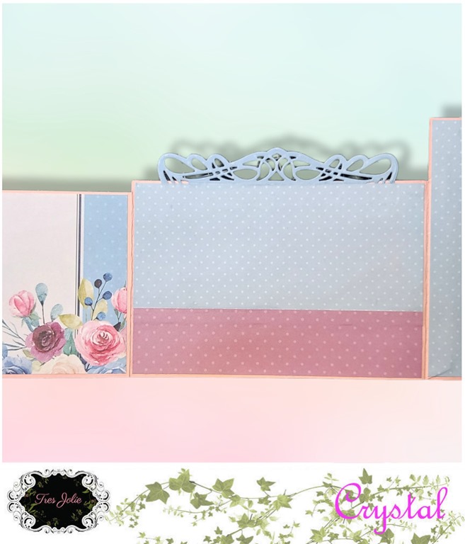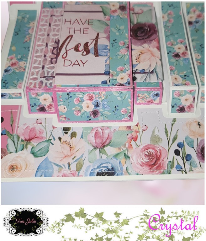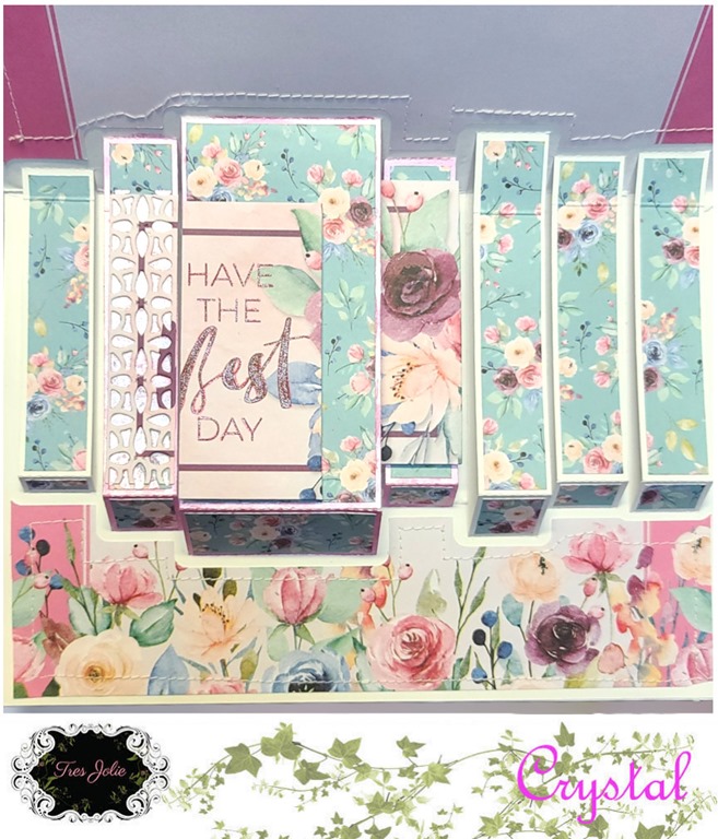 I used the dies from the kit this month to add some decorative cuts at the tops of the patterned paper that would be going on the steps and backed them with a piece of paper that I coated in the beautiful ink from the kit. Now it was just a matter of gluing everything down!