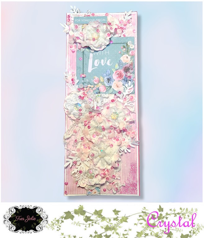 It is almost October, and besides the lower temperatures here in the northern hemisphere, the October Kits from Tres Jolie Kit Club will be getting revealed on Monday! YAY! New crafty supplies and lower temperatures? Yes, please! So, to bring September and the summer to an end, I have two more cards this month – with a little extra touch to them using mixed media mediums.
