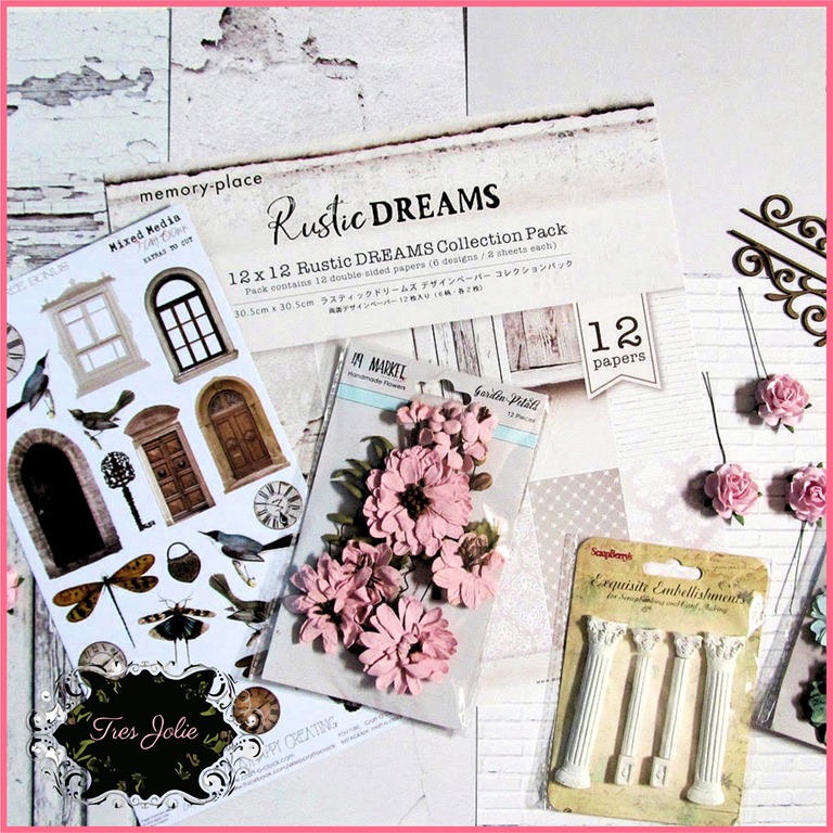 In addition to this month’s Scrapbooking Kit (*from previous Tres Jolie Kits), I used: