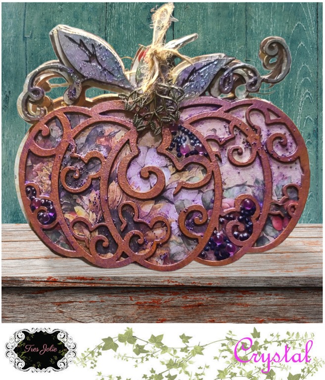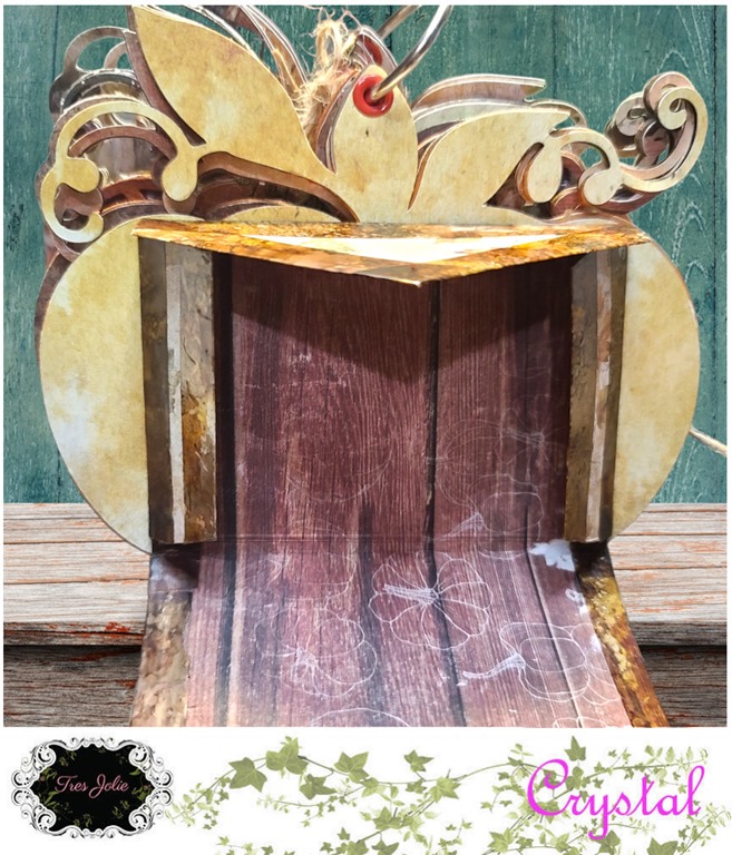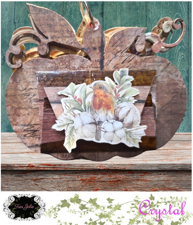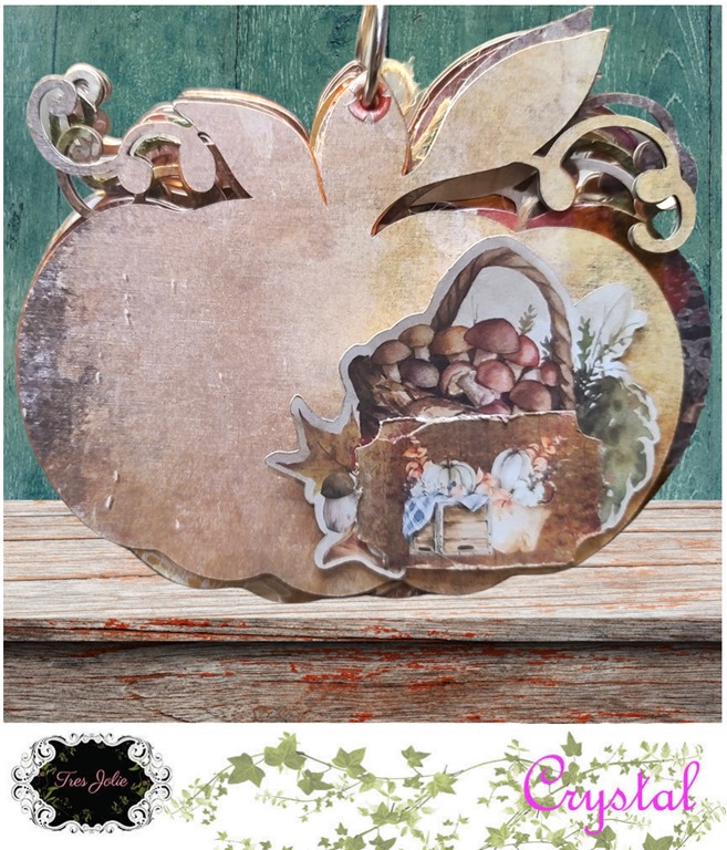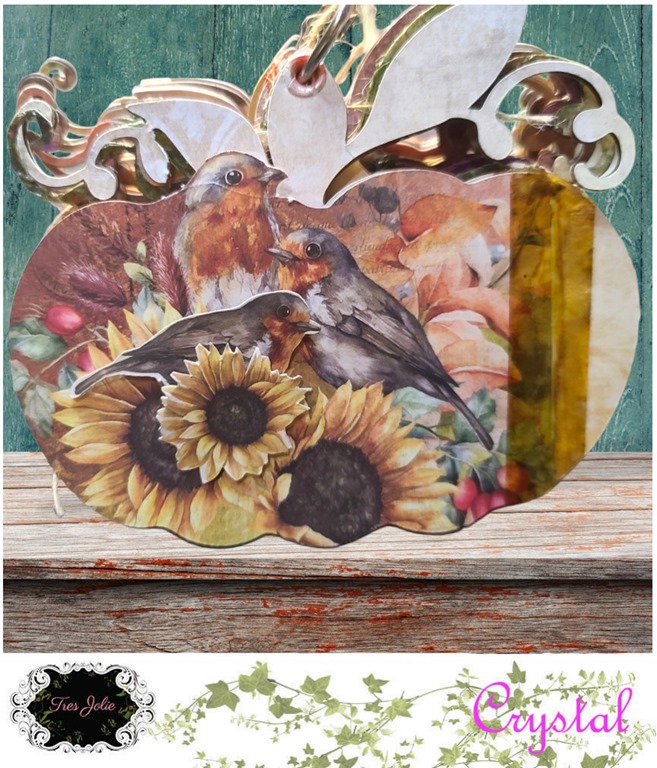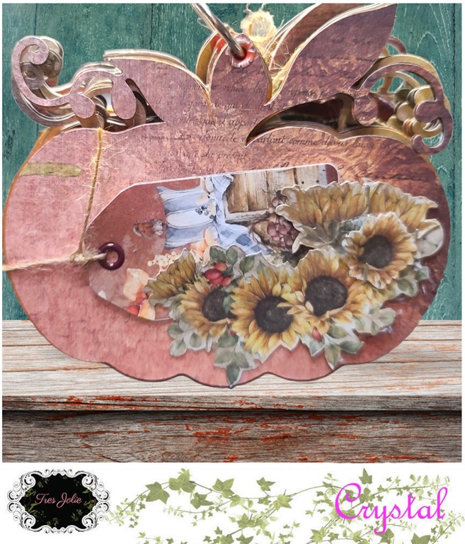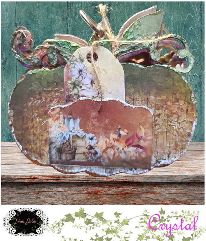 I must admit, I love pumpkins! As decoration. I won’t eat or drink them, but I love pumpkins and gourds as décor; so I was super excited to see this adorable Tres Jolie Chipboard Pumpkin Mini Album in the October Cards, Tags, & More Kit!