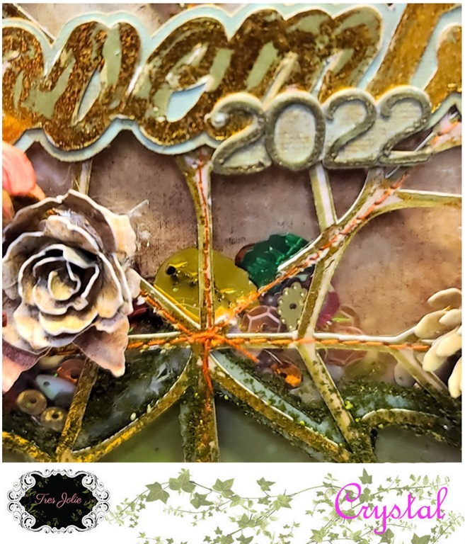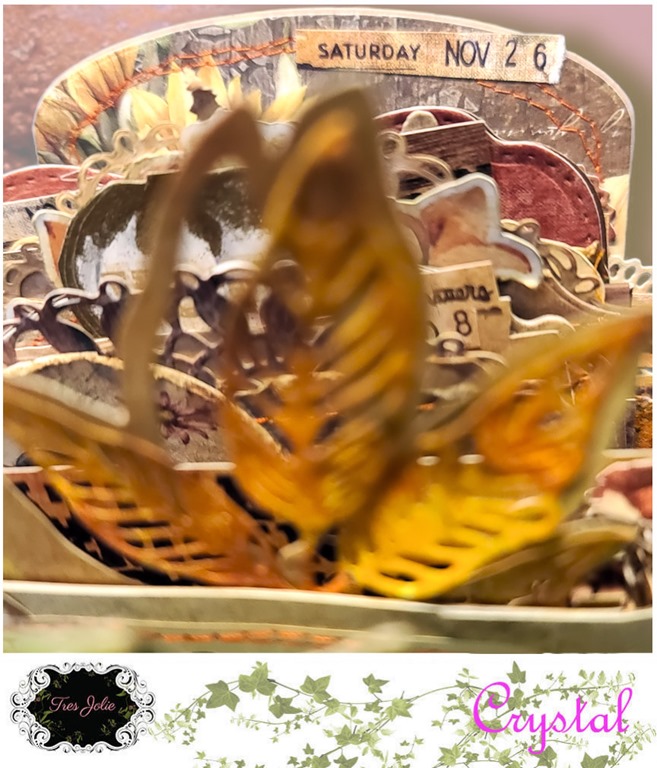 I used the amazing “Autumn Moods” papers from Craft o’ Clock found in the kit, and some beads and mediums from my stash to add some highlights.