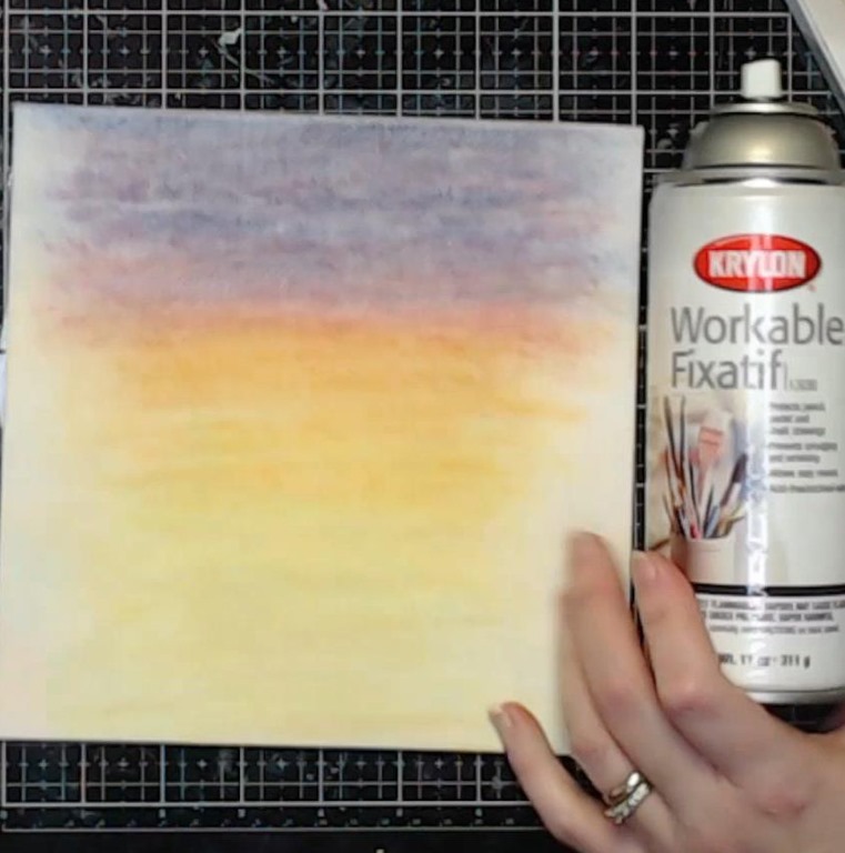 Once I had my sky in place, I decided to experiment a little! I didn’t know how well – or even if – Workable Fixatif would stick to an oil-coated surface, but I went with it (on a practice canvas seen in the video!) and it worked – or at least worked well enough for my purposes!