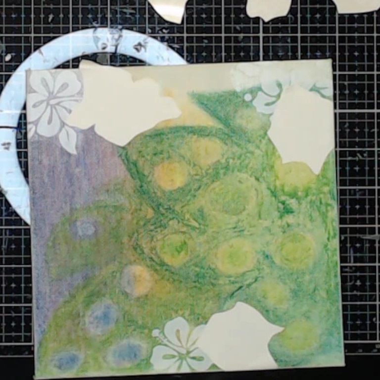Hey, y’all! Welcome to the end of June! For my final June project, I used this month’s Mixed Media Kit to create a tropical-themed canvas panel. I love oil pastels! They may require a bit of elbow grease at times to blend, but I love working with them!