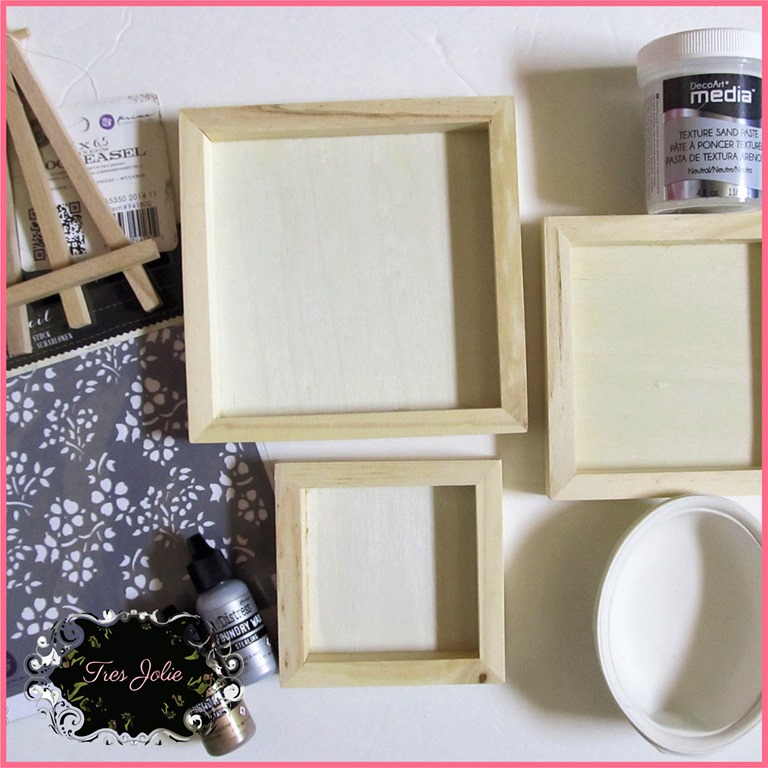 For this first project I played around with, I used a Clear Scraps wooden blank, the paints, texture paste, and stencil from the Mixed Media Kit, and some flowers from both the Scrapbooking and Cards, Tags, & More Kits. (y’all know Tres Jolie is having a collaboration with Clear Scraps this month, right? Make sure you keep your eyes peeled for the Tres Jolie and Clear Scraps “official” collaboration projects coming up!!)