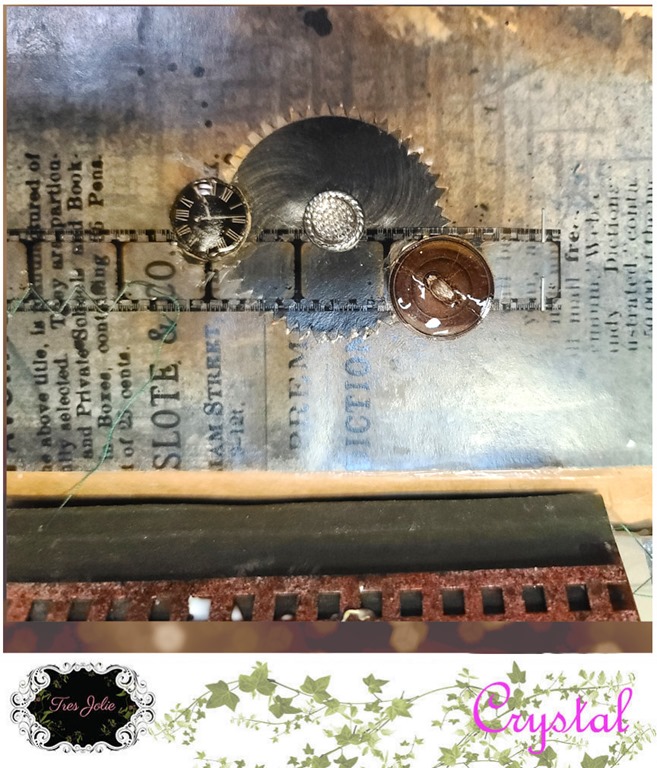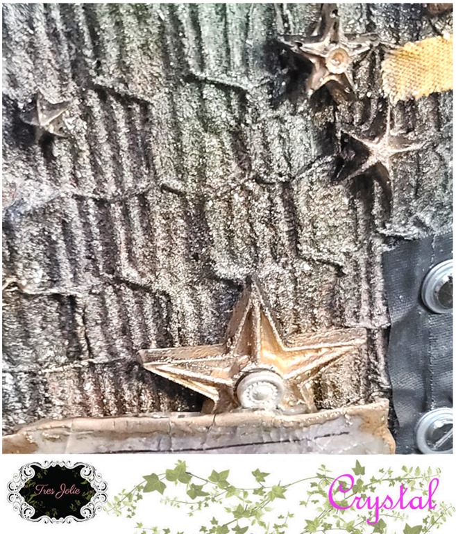 On this project, I added a Finnabair Mould Frame and a Sharon Ziv window frame mould piece – the Finnabair frame coated in “Ginger Magic” and the Sharon Ziv window coated in “Fairy Wings.”