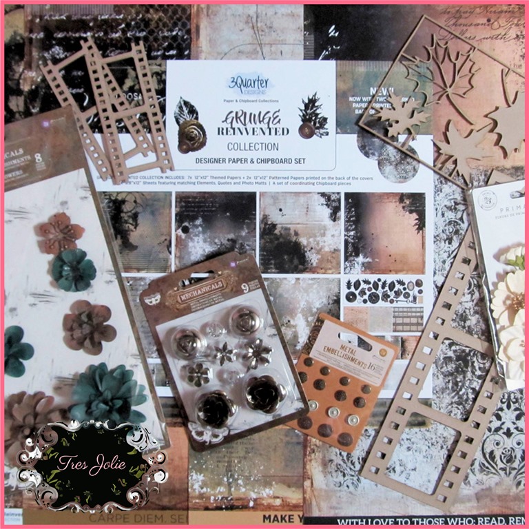 In addition to this month’s Mixed Media Kit, I used (from previous Tres Jolie Kits):